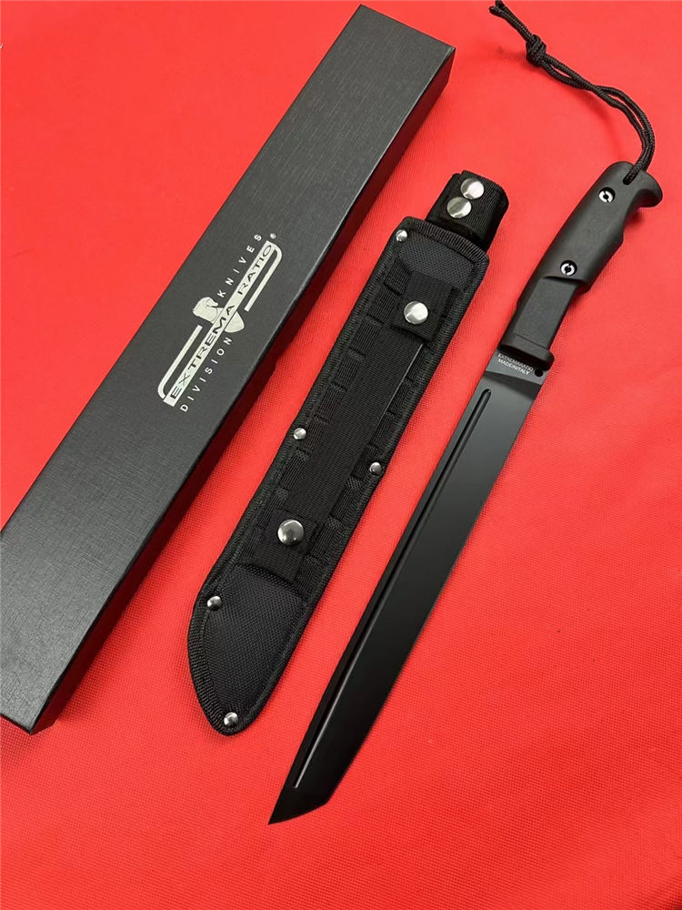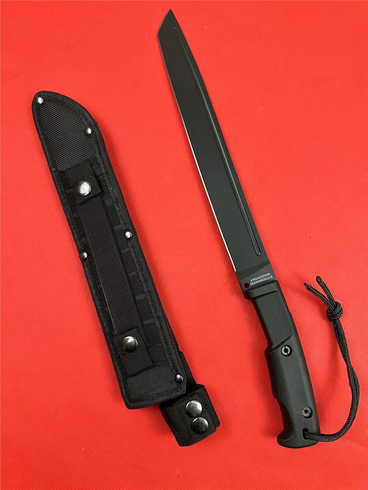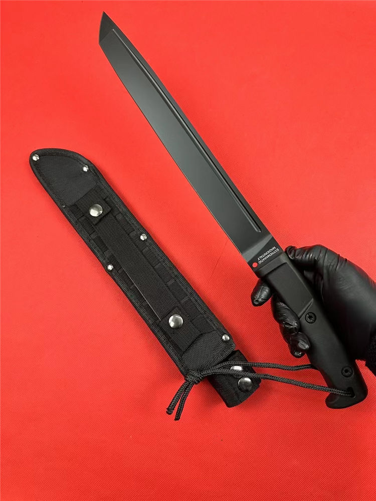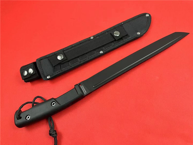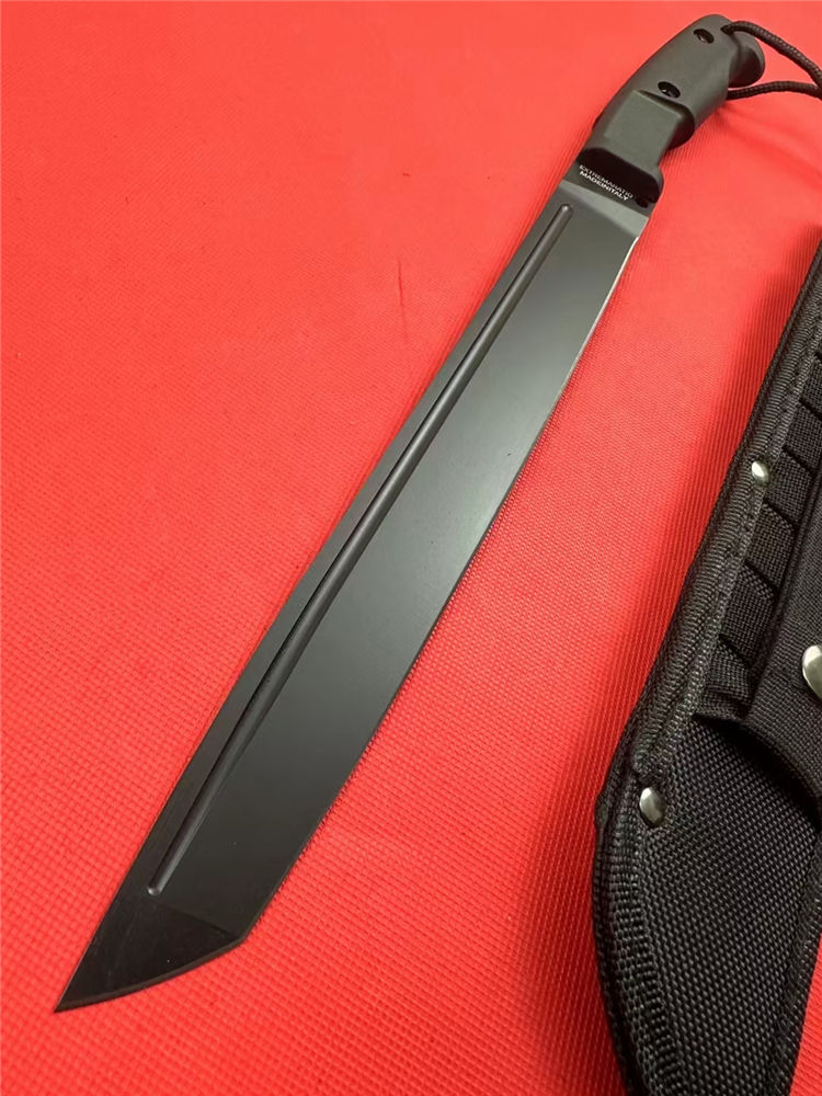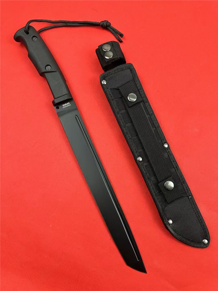 复刻版极端武力WAKI排障刀 总长:45cm 刃长:30cm 厚度:0.6cm 刃宽:3.5cm 表面:黑钛 硬度:60HRC 柄材:FORPRENE是一种弹性聚合物,可经受起高温150摄氏度和低温零下40摄氏度的考验,并且具有很强的耐腐蚀性
