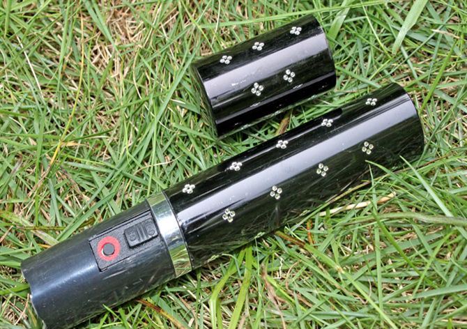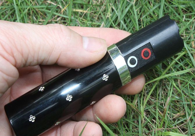 ☆电击棒主要的用途在于防身,原理为电池经由高压线圈升压后输出至极体二端,于二端中间形成电狐光、爆击声响,且整支带电.由于人类经由视觉神经目视对于『电』产生心理恐惧感,进而不敢进犯,最终达到防身效果。