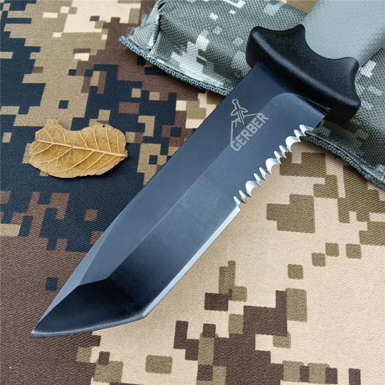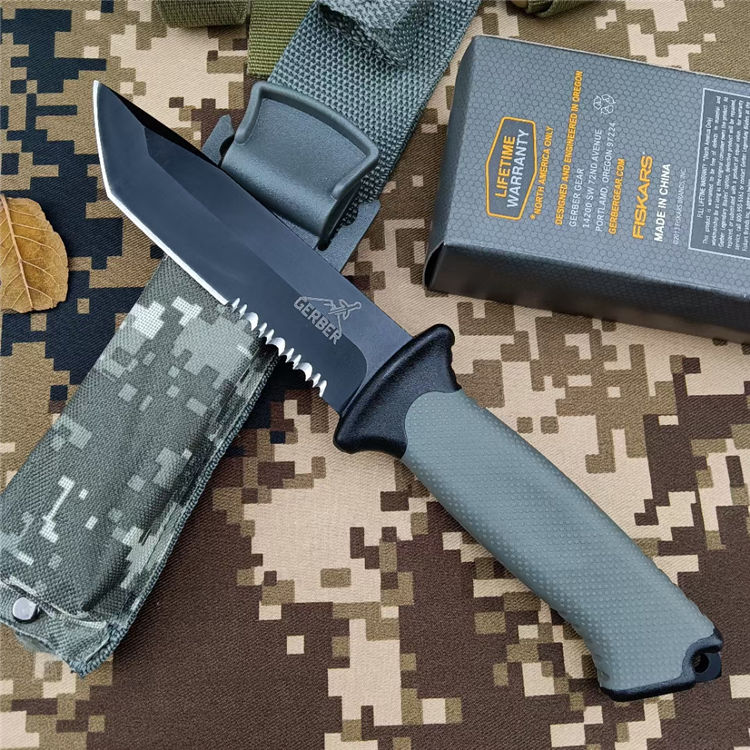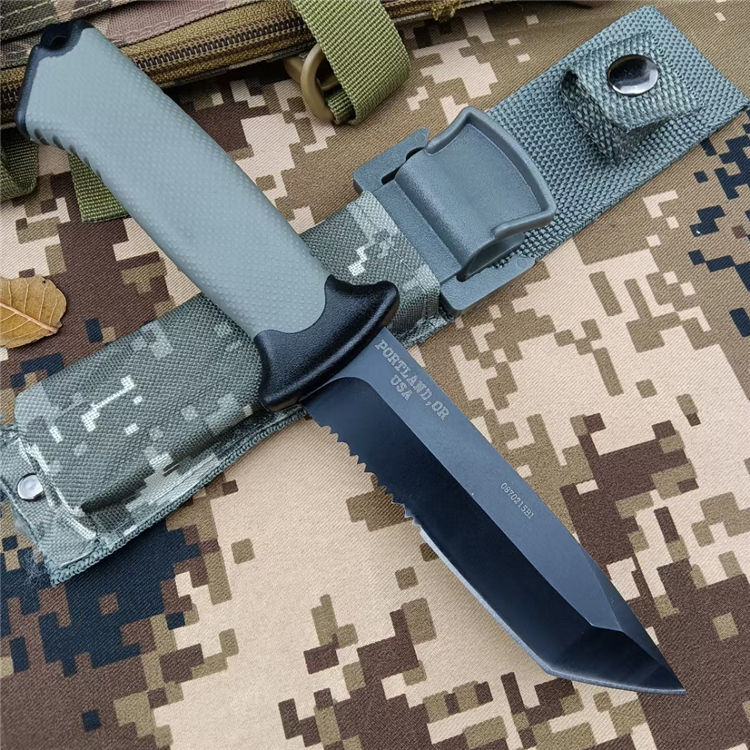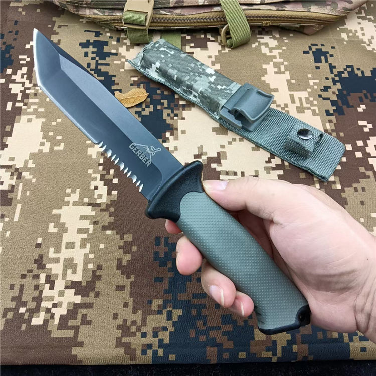 戈博BG9生存者步兵直刀 总长:24.8CM 刃长:11.8CM 刃宽:2.8CM 刃厚:4MM 刃材:8Cr13Mov 柄材:橡胶 柄长:13CM 柄宽:30MM 柄厚:20MM 重量:290G 刀鞘:战术刀鞘
