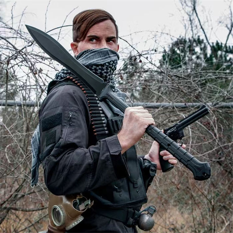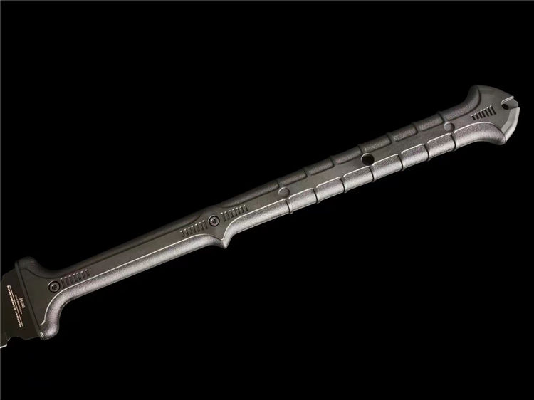 美国联合道具战斗指挥官开山 全长:102cm 刃长:51.8cm 刃宽:6cm 大气磅礴,这款剑似乎可以赋予你力量,带你感受不一样的世界。50厘米长的锋利刀身由1065碳钢制成,表面为黑色硬质涂层。手柄由尼龙纤维制成,非常坚固,尼龙护套和肩带可以轻松携带