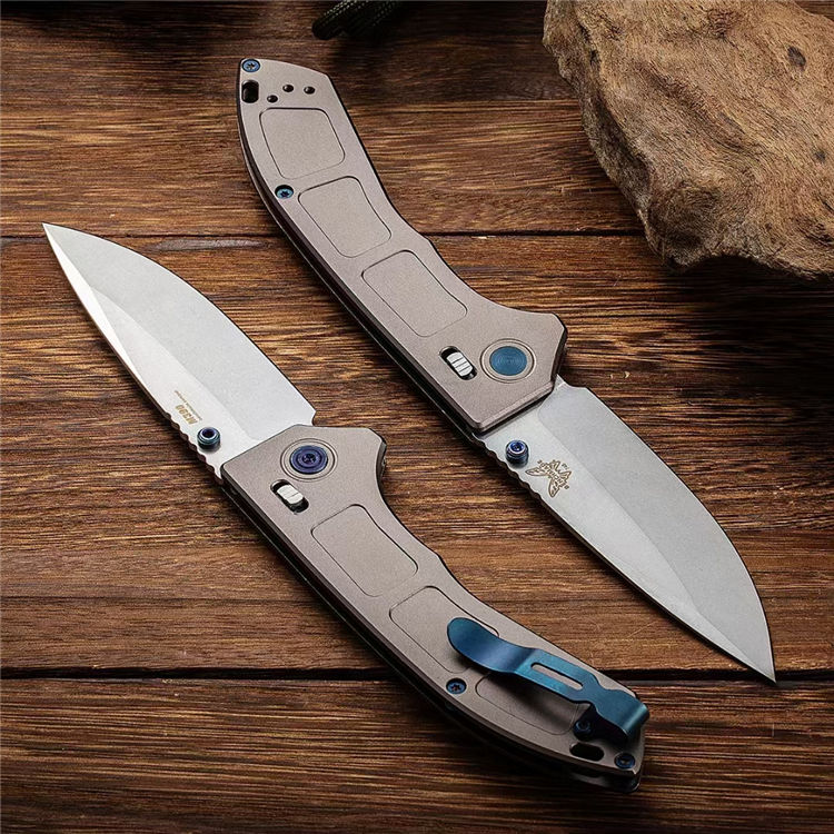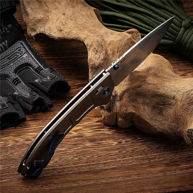 蝴蝶748折刀 全长:20.3CM 刃长:8.8CM 闭合:11.8CM 刃厚:0.2CM 刃材:9CR18 柄材:铝合金6061T6 重量:110克(含包装) 附件:说明书,彩盒,整刀用电脑锣CNC、数控精密磨床、线切割制作而成