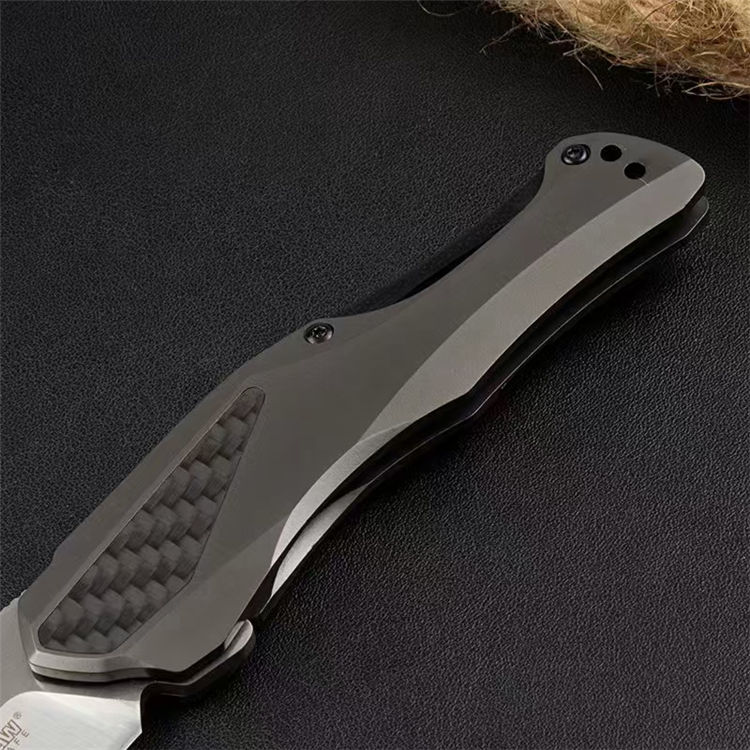 卡秀5500折刀 总长:20.1CM 刃长:8.6CM 刃宽:2.44CM 刃厚:2.7MM 刃材:D2 柄材:铝合金镶嵌炭纤维 柄长:11.5CM 柄宽:2.48MM 柄厚:10.6MM 重量:124G