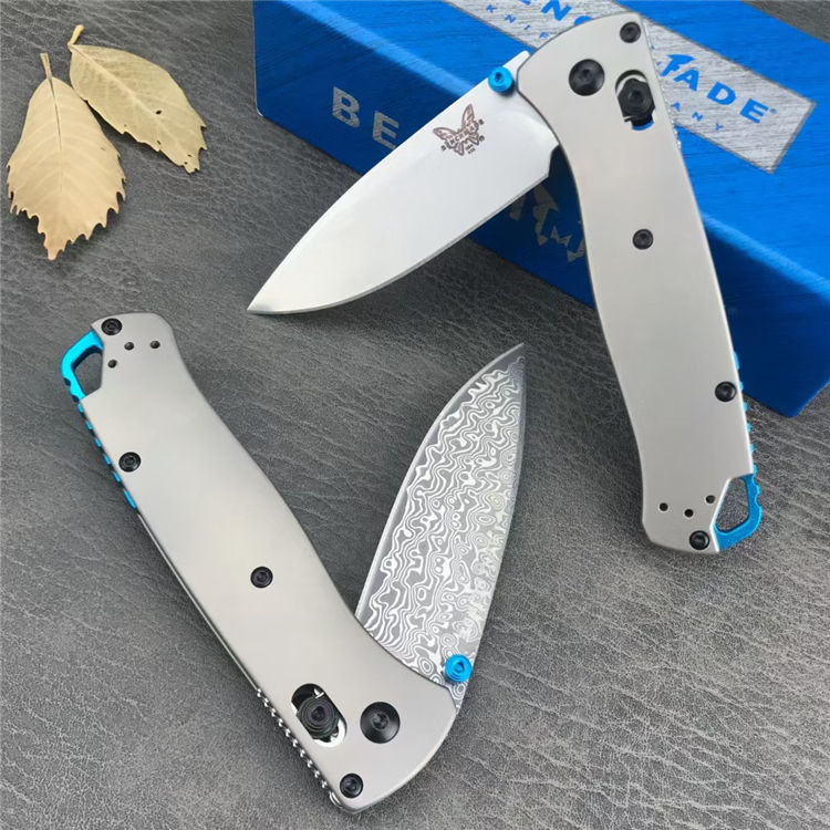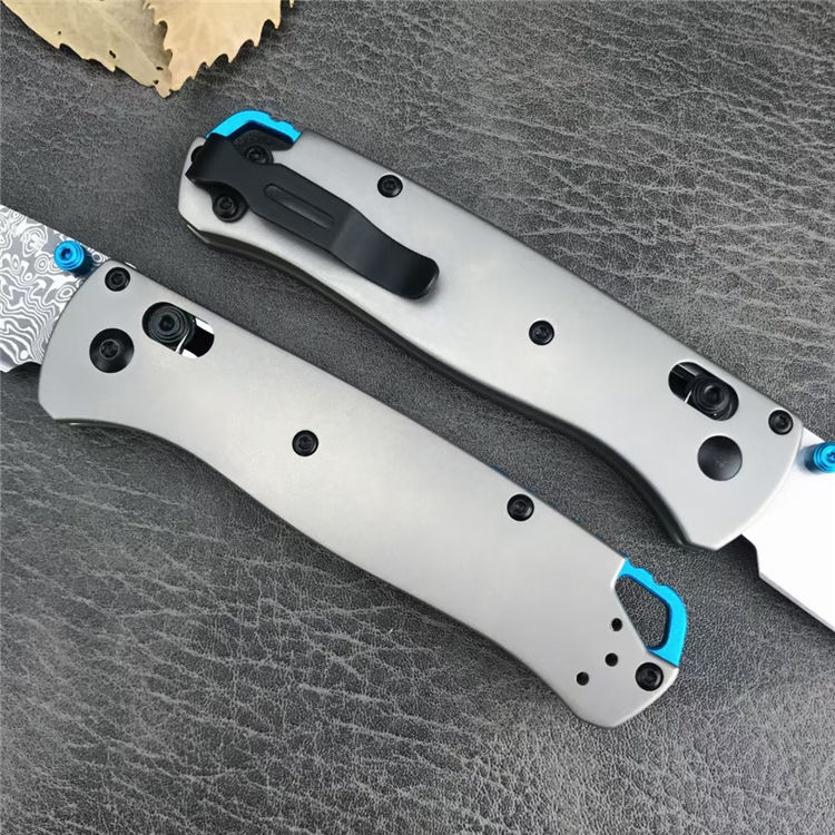 蝴蝶535折刀 总长:18.8CM 刃长:8CM 刃宽:2.4CM 刃厚:2.4MM 柄材:钛合金 刃材:大马士革 柄长:10.8 CM 柄宽:23.8MM 柄厚:10.7MM 重量:98G
