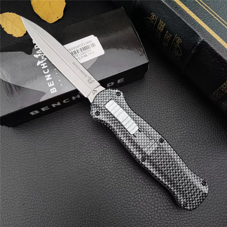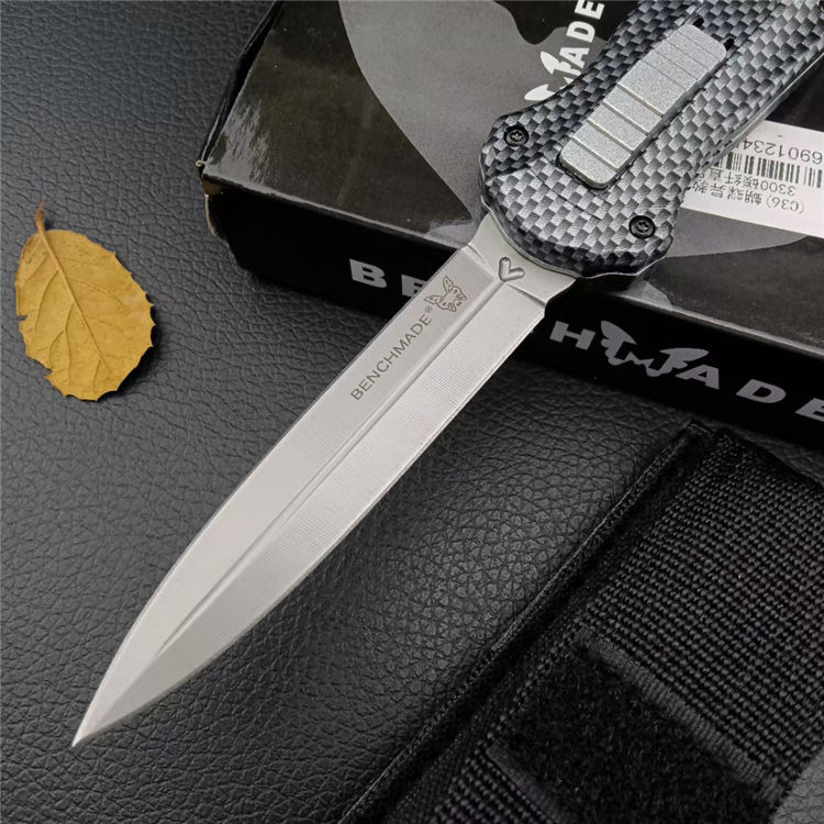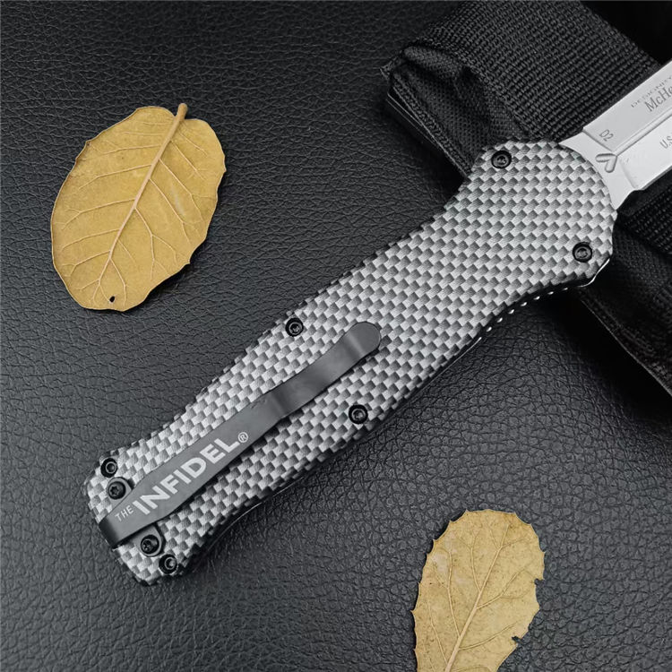 蝴蝶异教徒3300碳纤直出跳刀 总长:22.7CM 刃长:10CM 刃宽:1.8CM 刃厚:2.5MM 刃材:440C 柄材:铝合金 柄长:12.7CM 柄宽:30MM 柄厚:12MM 重量:220G