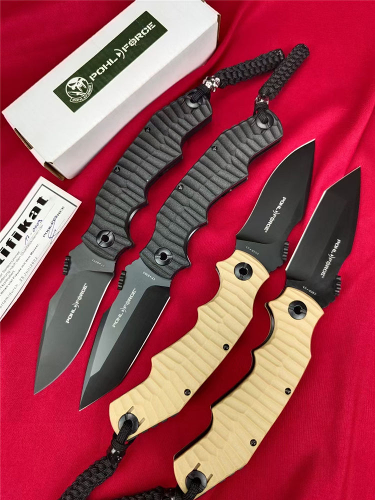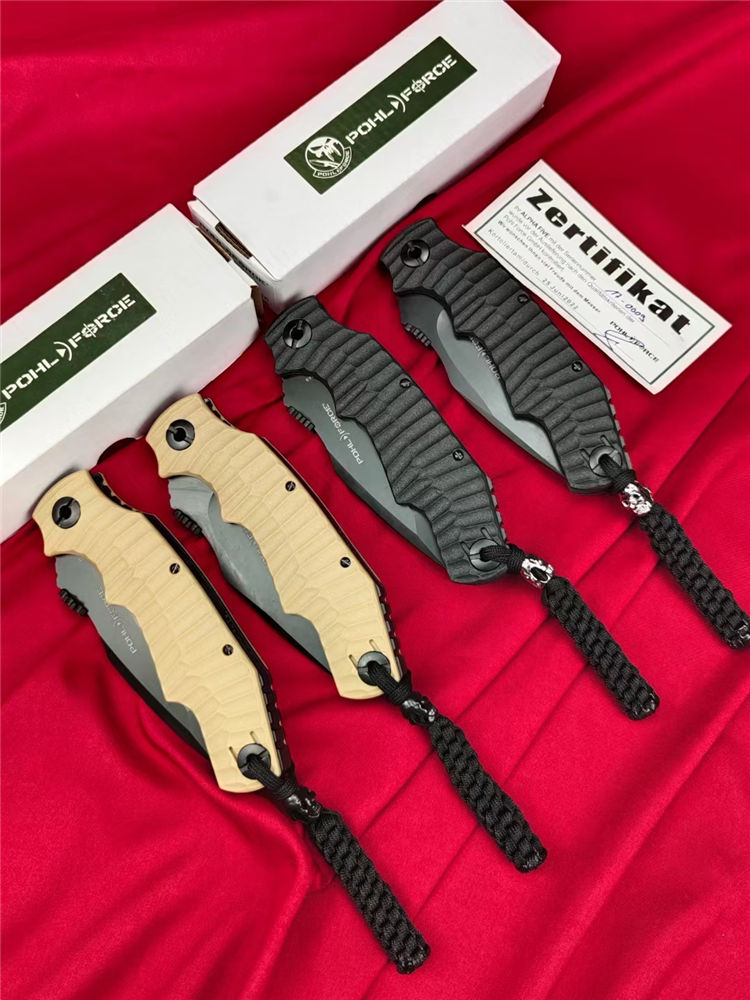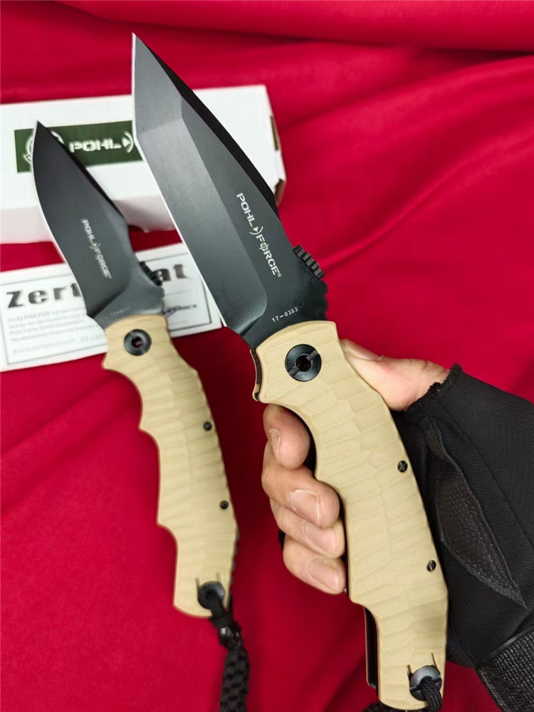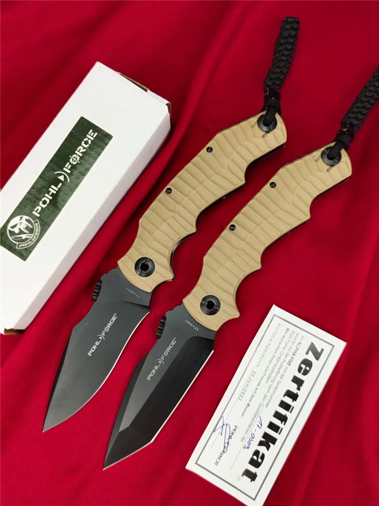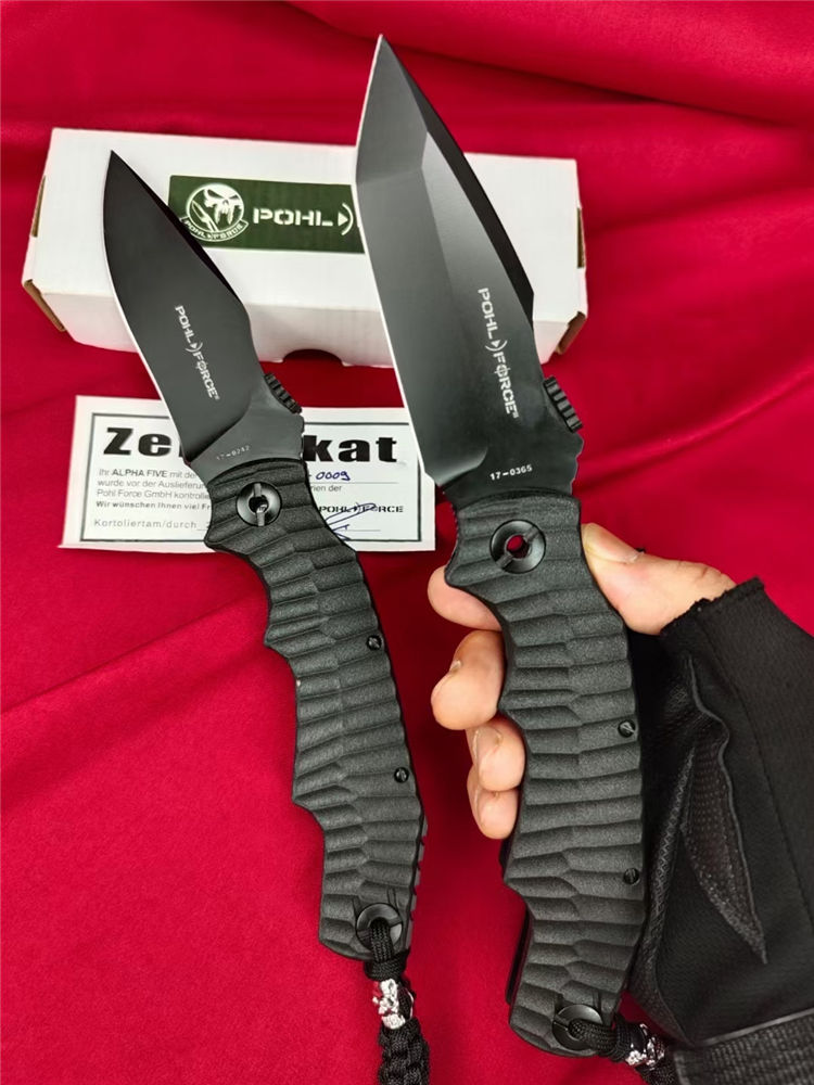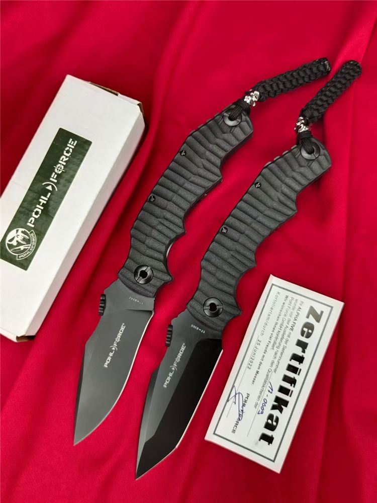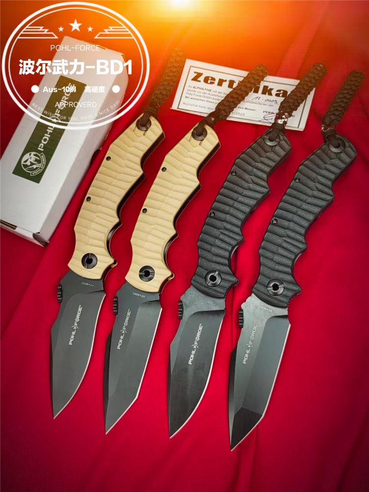 复刻版波部队BD1折刀 全长:260mm 刃长:105mm 折合:150mm 刃宽:34mm最宽处 刃厚:5.0mm 刃材:AUS-10钢 刀重:258g 毛量:293g(含鞘包装盒) 硬度:58-59HRC 表面:纳米滚珠喷砂涂层-黑钛 柄材:全钢+ABS波浪纹 结构:加大号双黄铜滚珠轴承 包装:出口装白色天地盖带证书