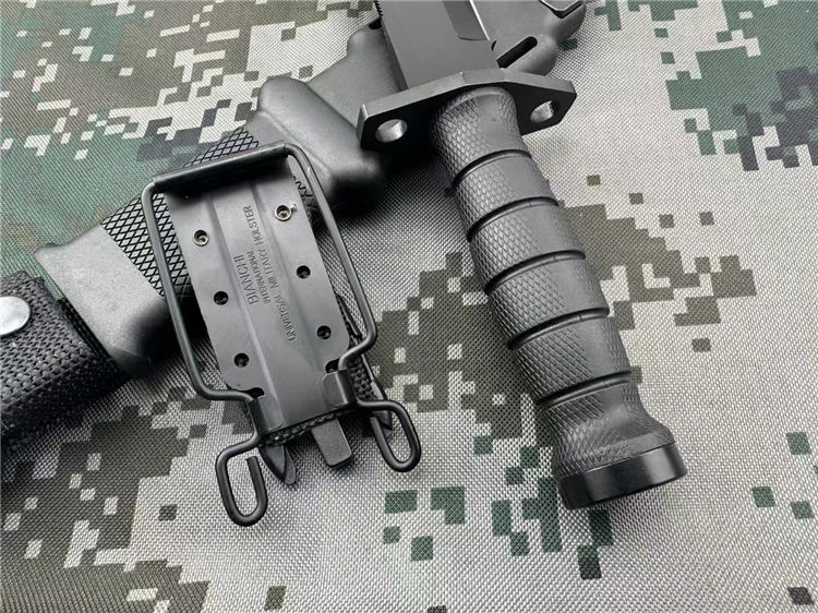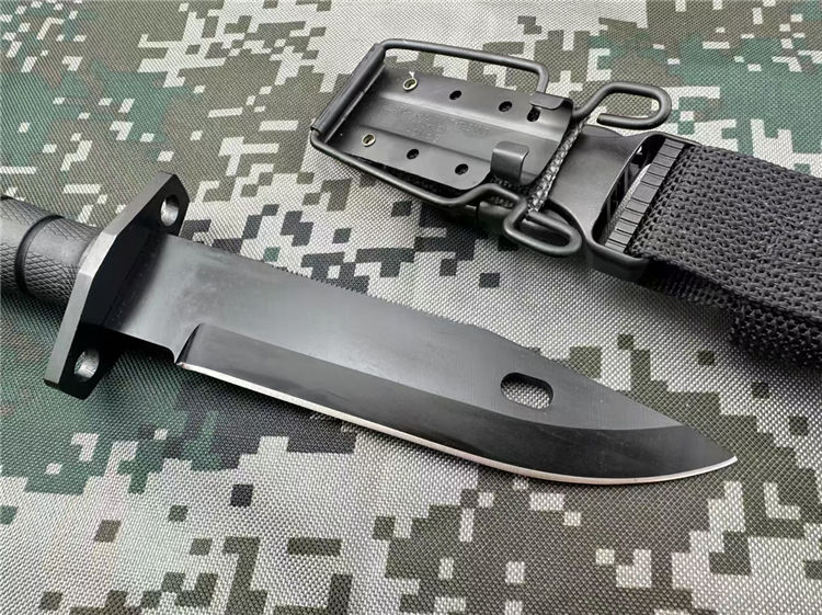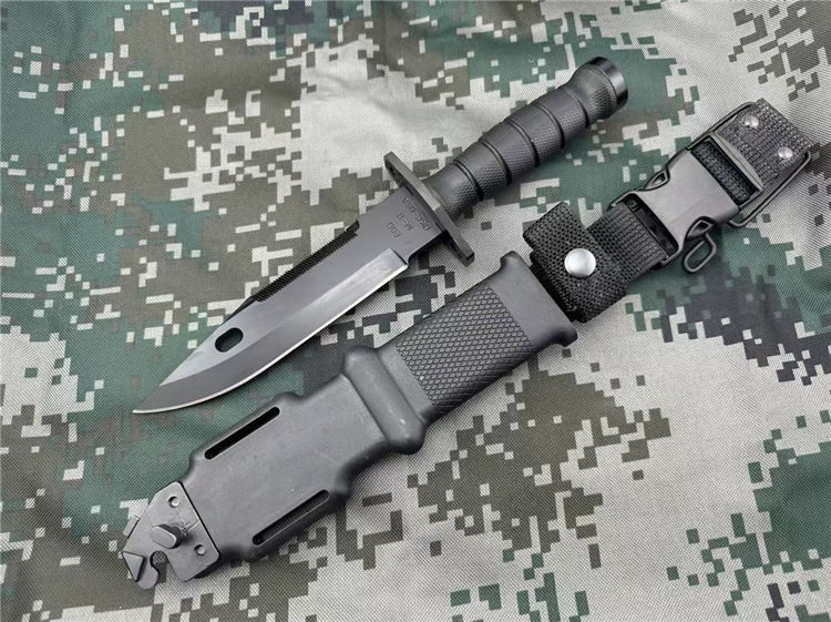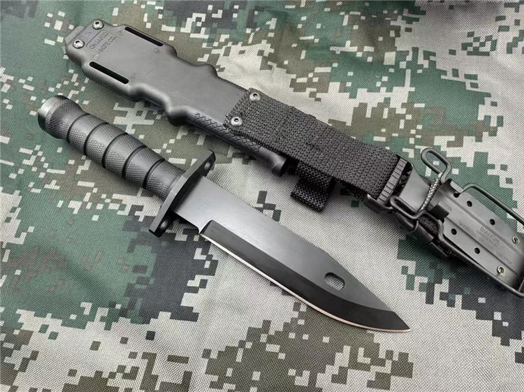 百炼版安大略M11军刺 全长:30.4CM 刃长:15.2CM 刃厚:0.5CM 柄长:12.2CM 刃材:440C 柄材:尼龙玻纤 附件:战术刀鞘 重量:780g 440C钢黑色全刃战术直刀是ONTARIO为美军在阿富汗战争设计并使用的一款战术直刀。ONTARIO是全美军用刀主要的供应者。强悍的刀身构造和黑色哑光刀面,以及多用途的刃型设计,是军迷爱好者的一款经典战术刀