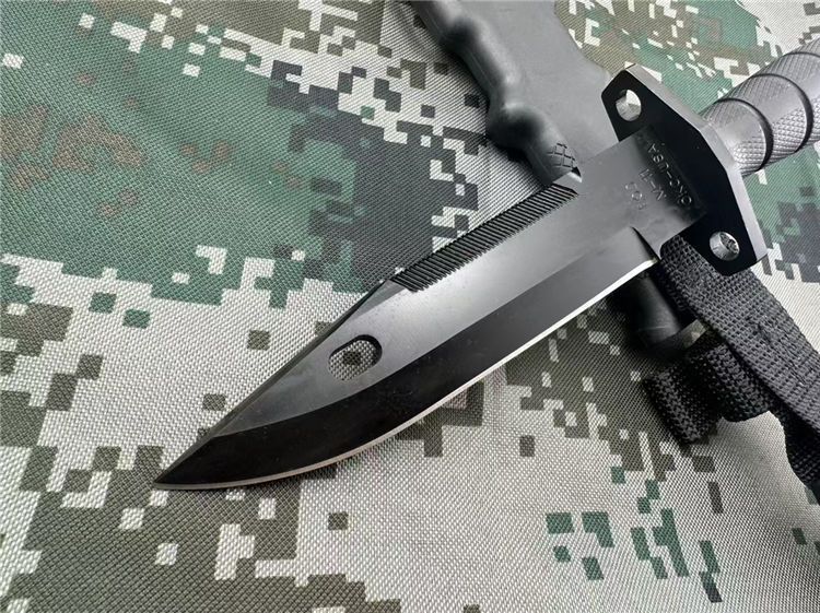 440C钢黑色全刃战术直刀是ONTARIO为美军在阿富汗战争设计并使用的一款战术直刀。ONTARIO是全美军用刀主要的供应者。强悍的刀身构造和黑色哑光刀面,以及多用途的刃型设计,是军迷爱好者的一款经典战术刀