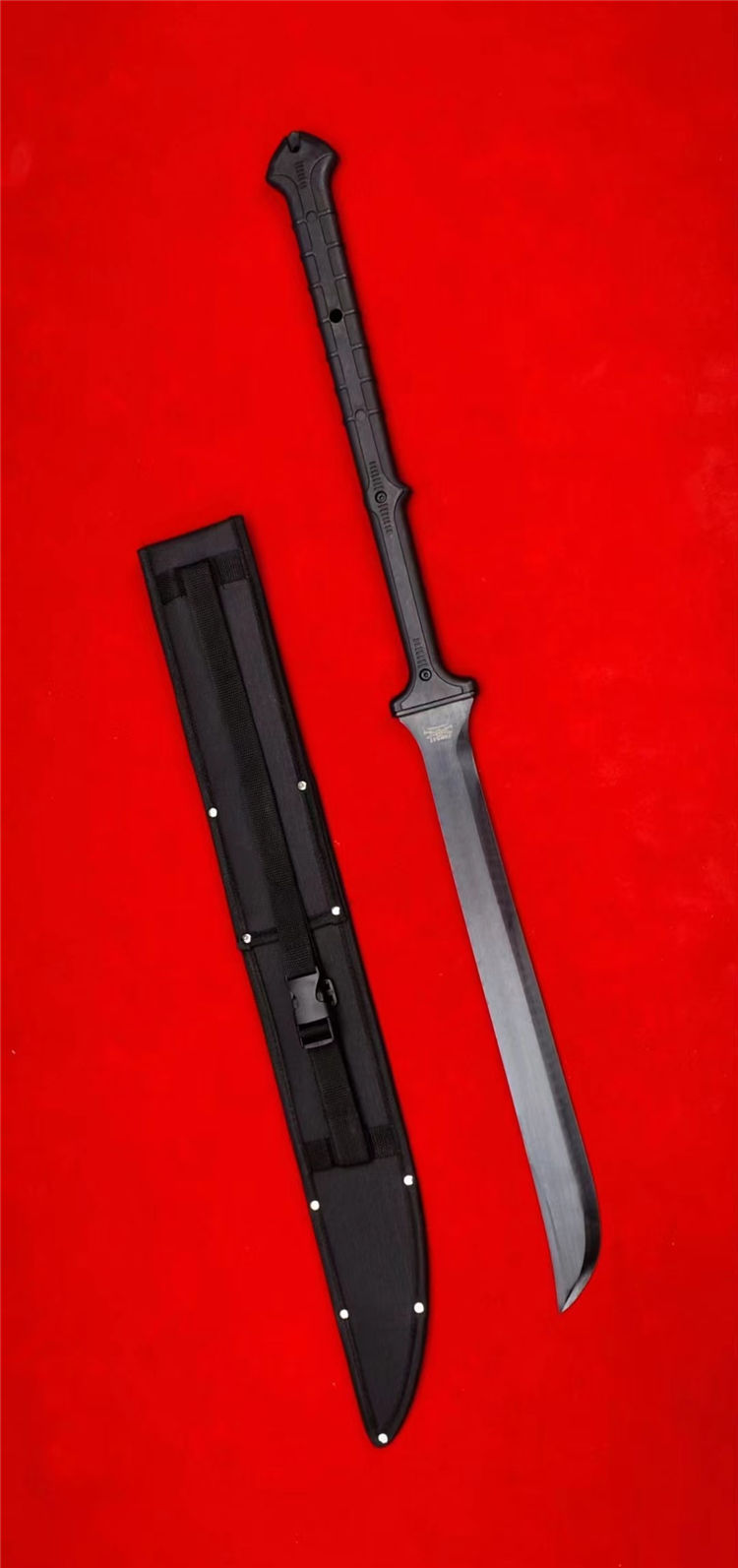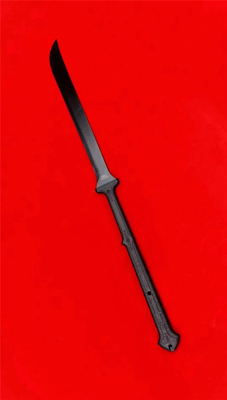 美国联合道具指挥官开山 全长:102cm 刃长:51.8cm 刃宽:6cm 大气磅礴,这款剑似乎可以赋予你力量,带你感受不一样的世界。50厘米长的锋利刀身由1065碳钢制成,表面为黑色硬质涂层。手柄由尼龙纤维制成,非常坚固,尼龙护套和肩带可以轻松携带