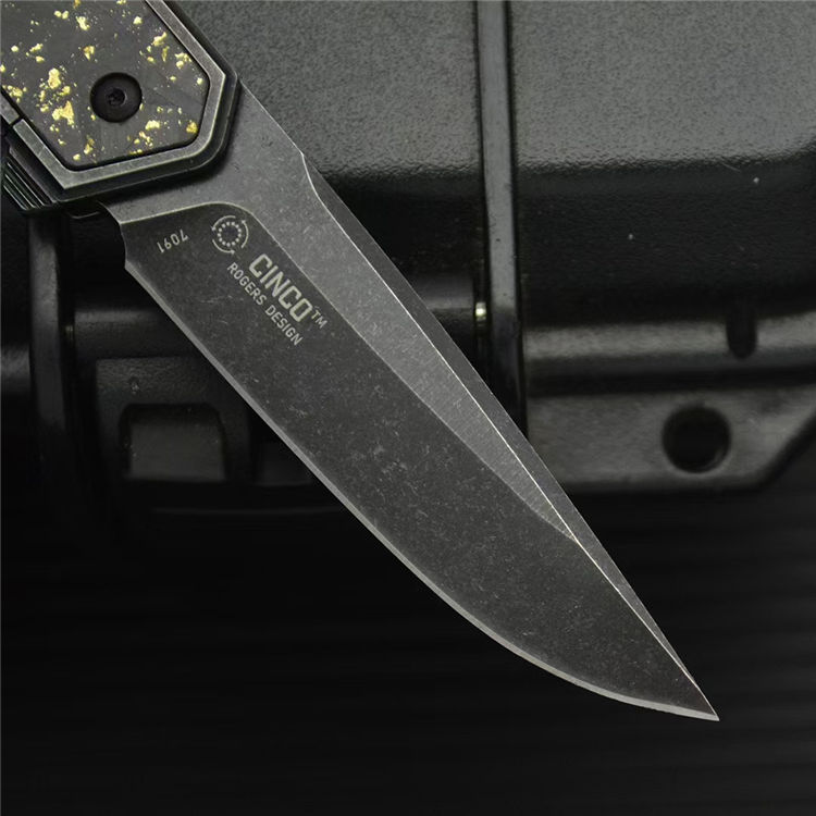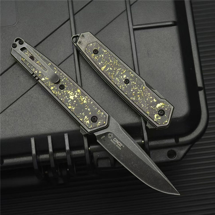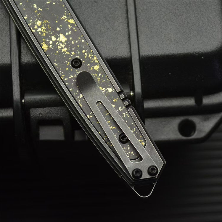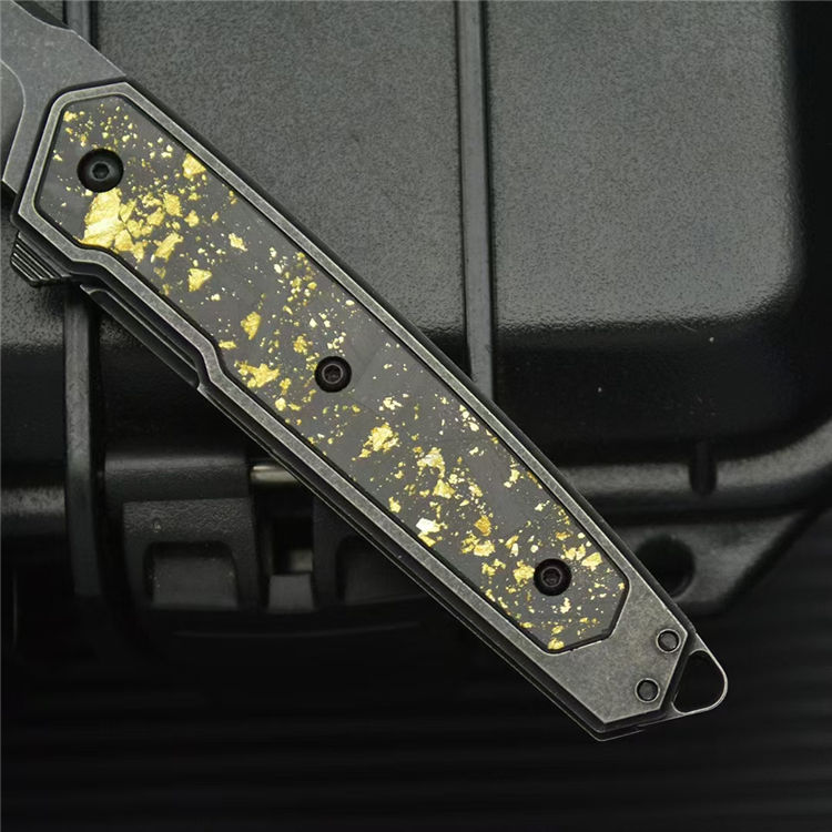 柄材:420钢镶嵌金箔碳纤维贴片