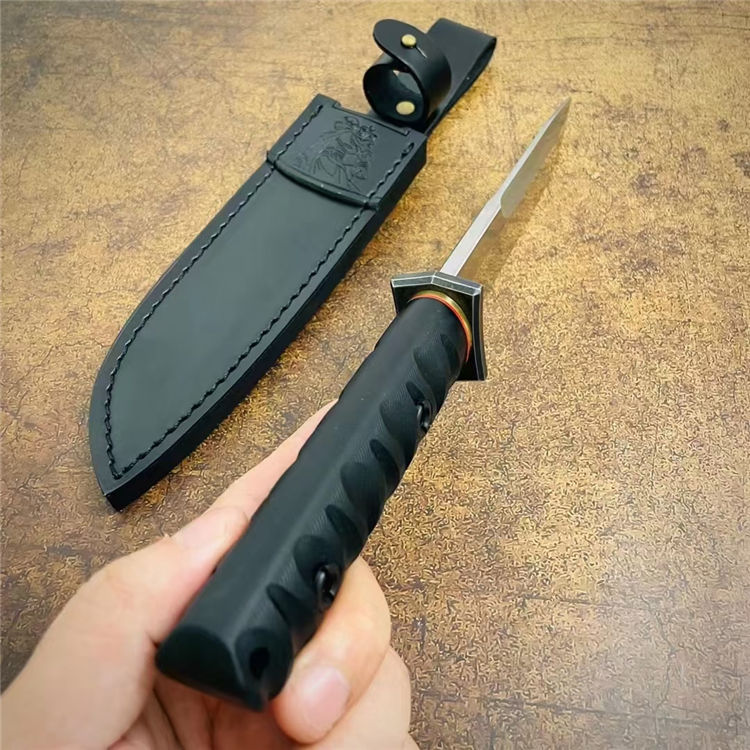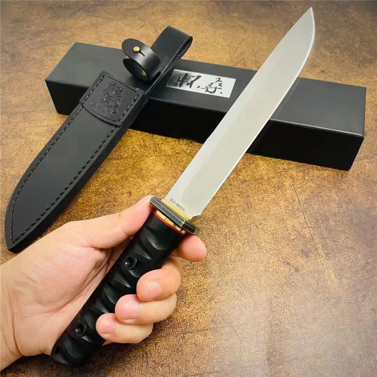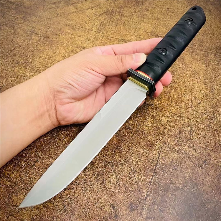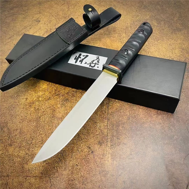 怀桑小武士直刀 全长:29.5cm 刃长:16.5cm 柄长:13cm 刃宽:3cm(最宽处) 刃厚:6mm 刃材:SLD-MAGIC 柄材:G10 硬度:60HRC 重量:348克