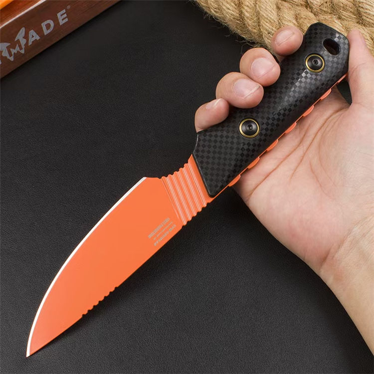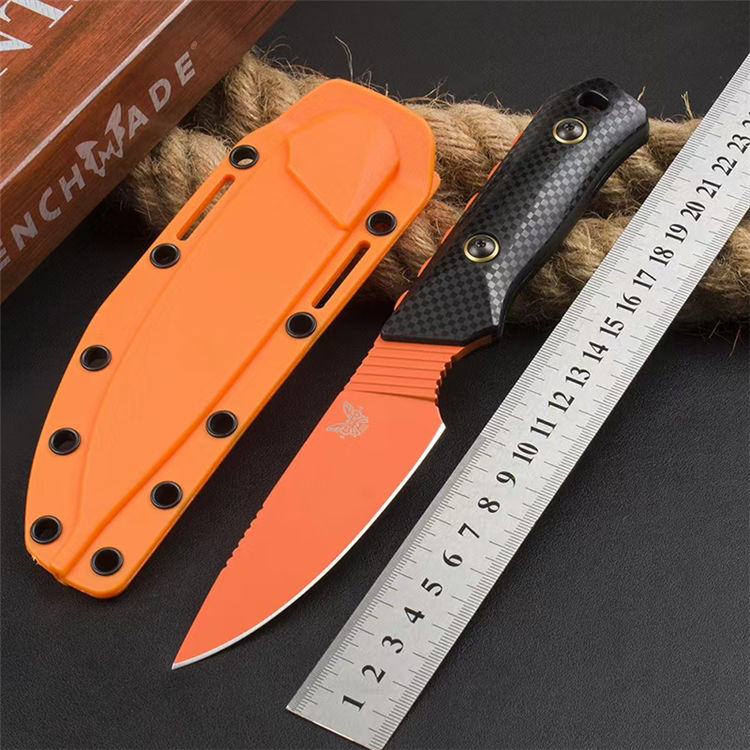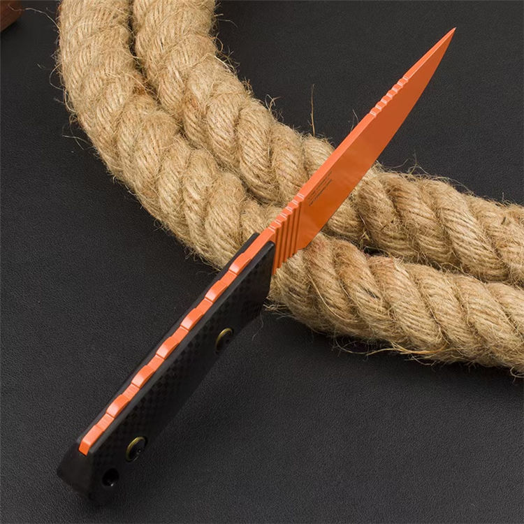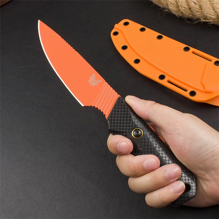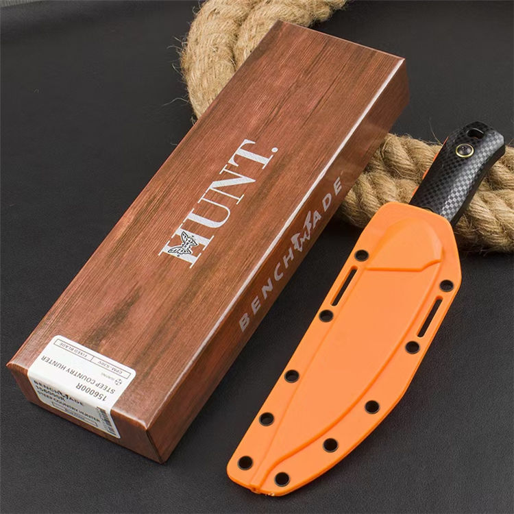 蝴蝶156000OR狩猎直刀 全长:225mm 刃长:102mm 刃宽:33mm 柄长:110mm 刃厚:4mm 刃面:石洗或黑色石洗 刃材:D2钢 净重:180g 重量:289g(含包装) 刀鞘:尼龙玻璃纤维Santoprene 柄材:尼龙玻璃纤维Santoprene 硬度:真空淬油热处理 硬度:58-60HRC 包装:原装金盒