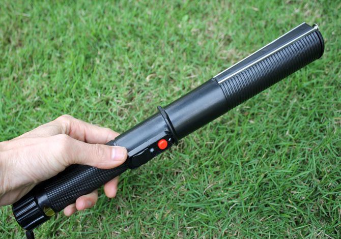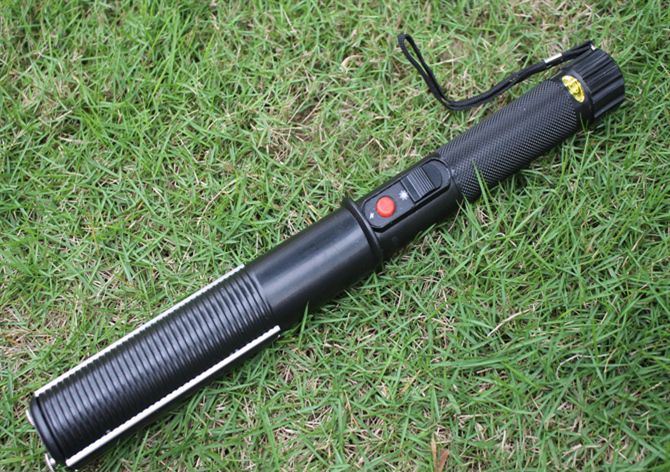 尺寸33cmX3.3cmX3.8cm .LED照明、直流脉冲。该产品款式新颖,使用安全方便(带保险装置)。照明时间长。电击功率大。专为狱警部门设计防抢利用充电电池供电产生1500万强电流,使侵犯者丧失抵抗能力,能瞬间制服侵犯者,而这种高电流的工作原理,是不会造成任何伤害,使用时贴近人体或对准对方。产品可长期使用,充电器输入电源为家用220V照明电,充电时间5-6小时左右