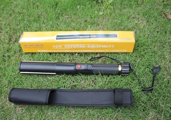 918大功率高压防身电棍 尺寸33cmX3.3cmX3.8cm .LED照明、直流脉冲。该产品款式新颖,使用安全方便(带保险装置)。照明时间长。电击功率大。专为狱警部门设计防抢利用充电电池供电产生1500万强电流,使侵犯者丧失抵抗能力,能瞬间制服侵犯者,而这种高电流的工作原理,是不会造成任何伤害,使用时贴近人体或对准对方。产品可长期使用,充电器输入电源为家用220V照明电,充电时间5-6小时左右