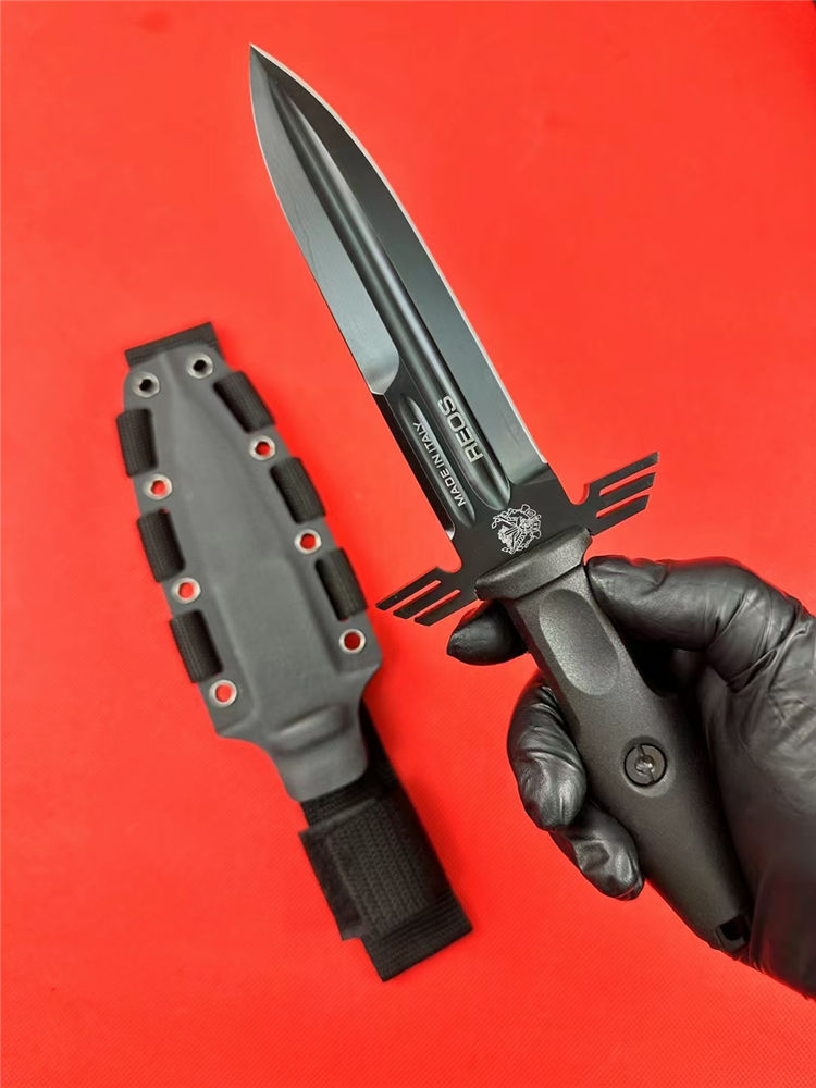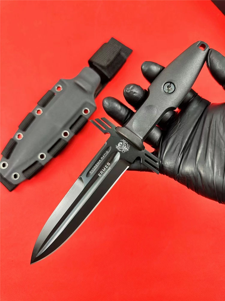 极端武力埃姆斯特种直刀 全长:25.6cm 刃长:14cm 刃厚:0.63cm 材质:博克N690钢 硬度:58-60HRC 表面:黑钛 包装:黑色礼盒+证书