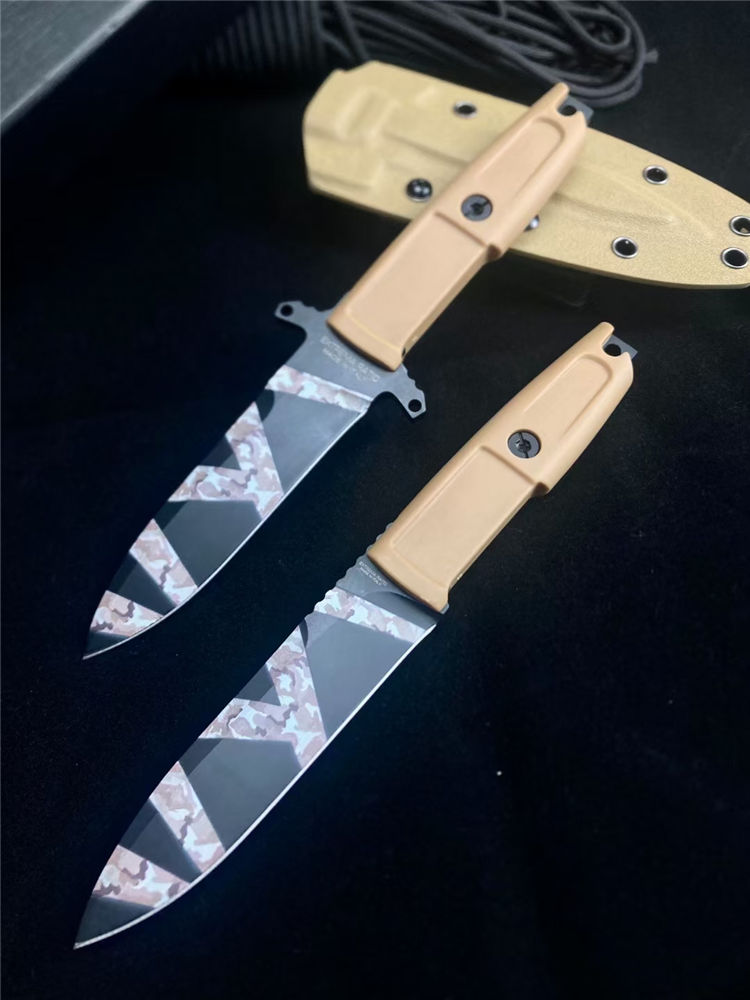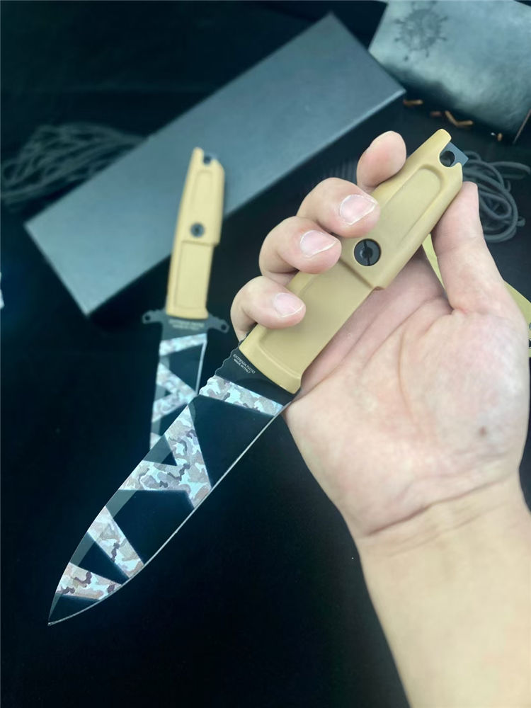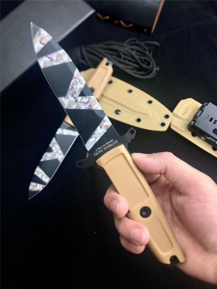 极端武力侦察兵直刀 全长:23.5cm 刃长:11.5cm 厚度:5mm 材质:D2钢 刀鞘:战术K鞘