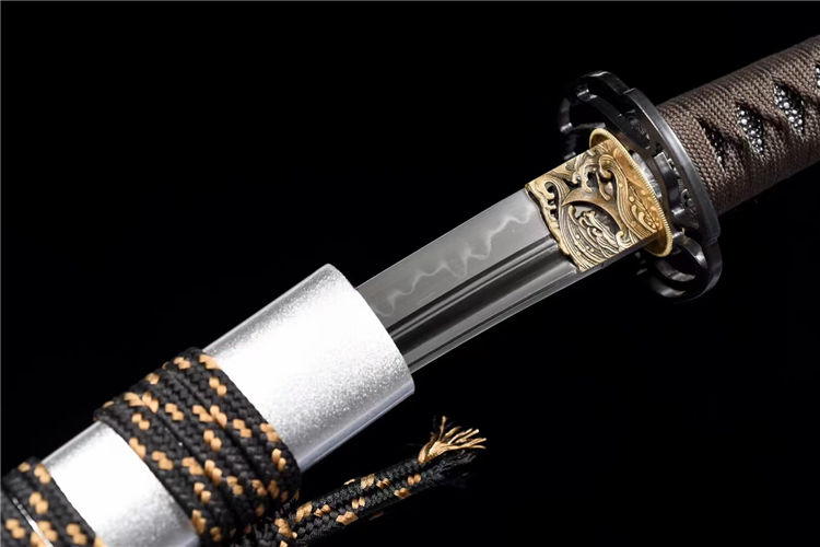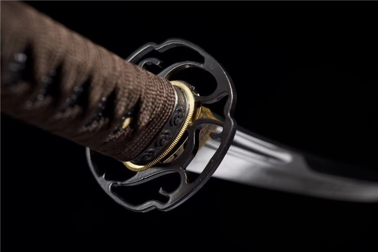 刃材:高性能T10烧刃寒气逼人,铁质刀镡