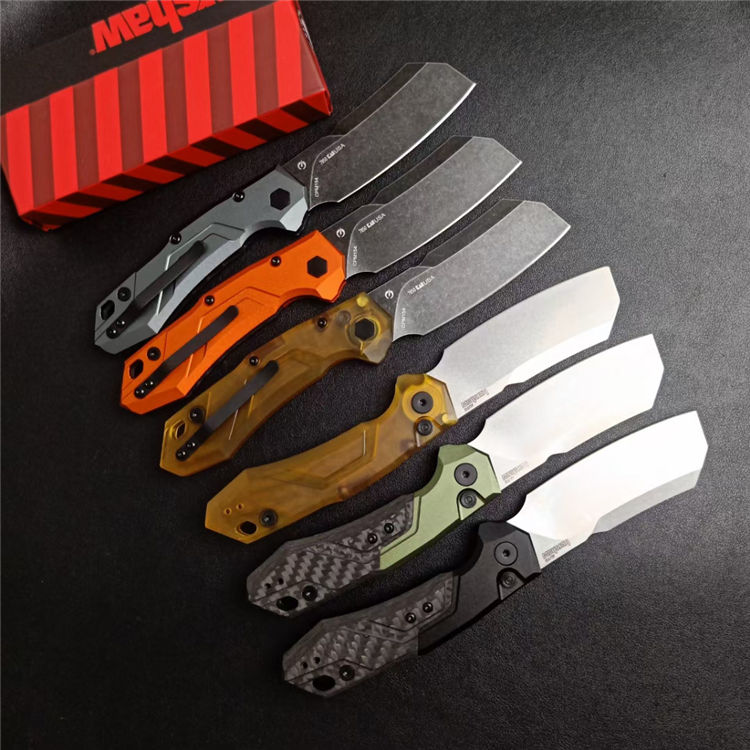 卡秀7850侧开跳刀 总长:19.4CM 刃长:8.3CM 刃宽:2.9CM 柄材:PEI塑料柄和碳纤+铝柄 刃材:D2 刃厚:2.9MM 柄长:11.1CM 柄宽:23.3MM 柄厚:12.1MM 重量:68G