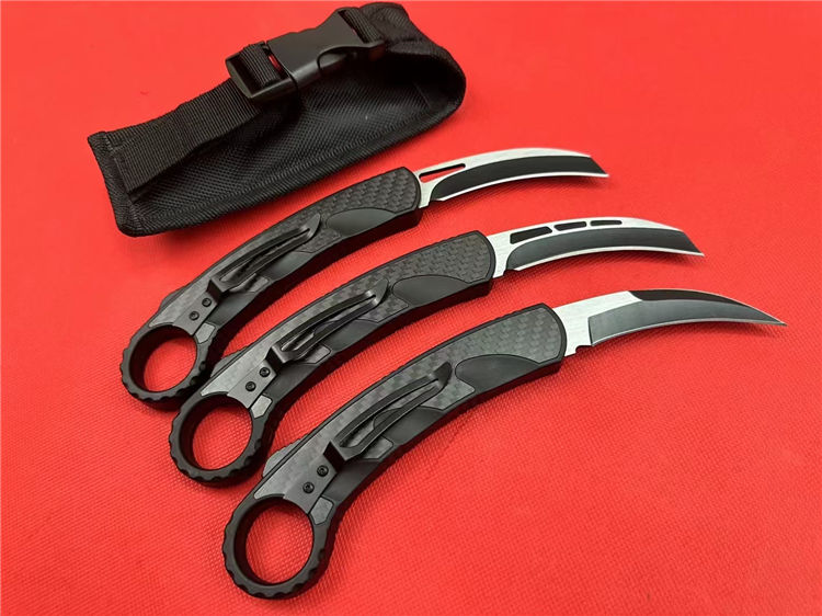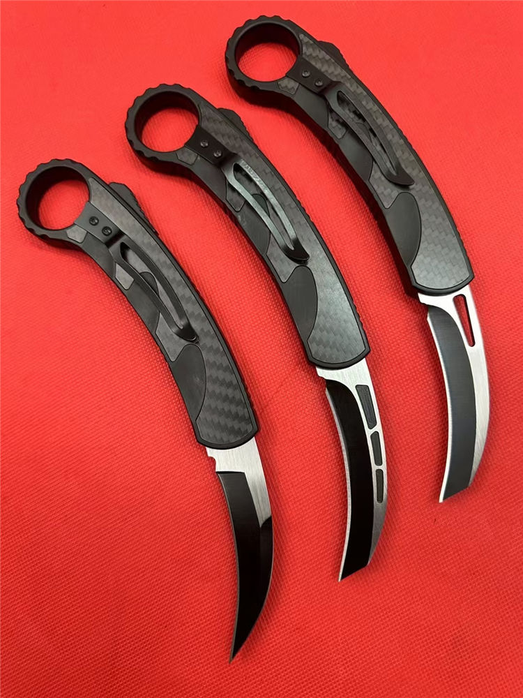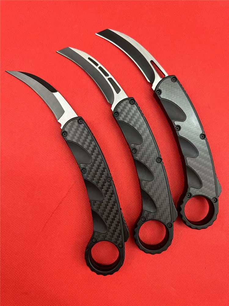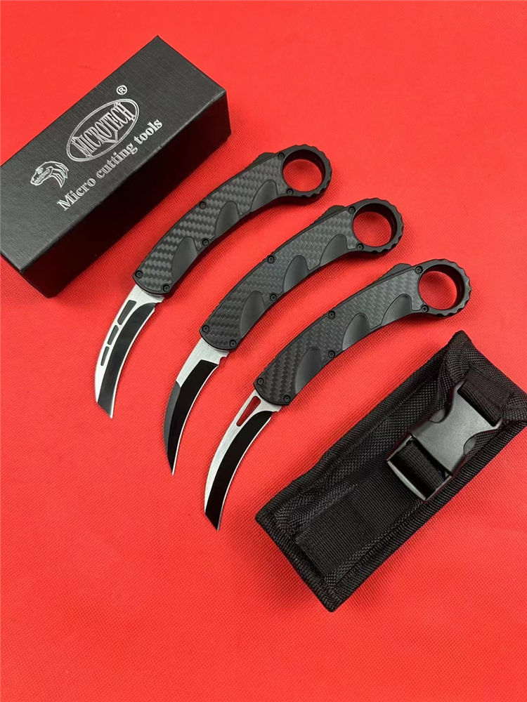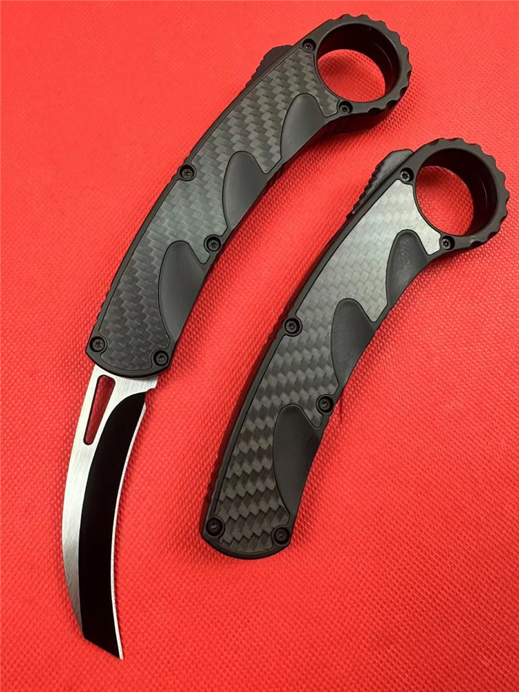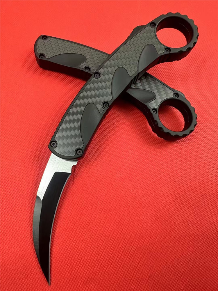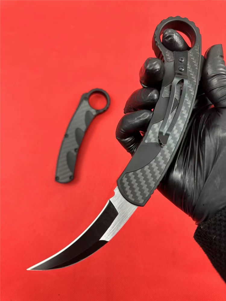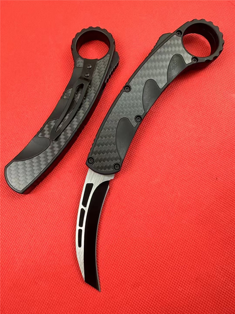 微技术碳纤爪跳刀 全长:21.5CM 刃长:7.3CM 刃宽:1.9CM 刃厚:0.3CM 刃材:5CR15MOV 柄材:锌铝合金+碳纤 刀型:直跳 锁定:按钮锁 净重:207g 毛重:300克(含包装) 其它:优质尼龙套+礼品盒