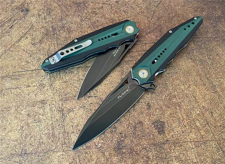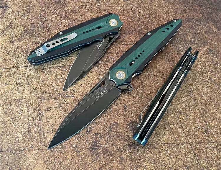柄材:由两种不同颜色复合G10镶嵌而成、CNC加工,配钛合金夹子