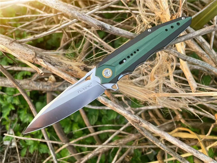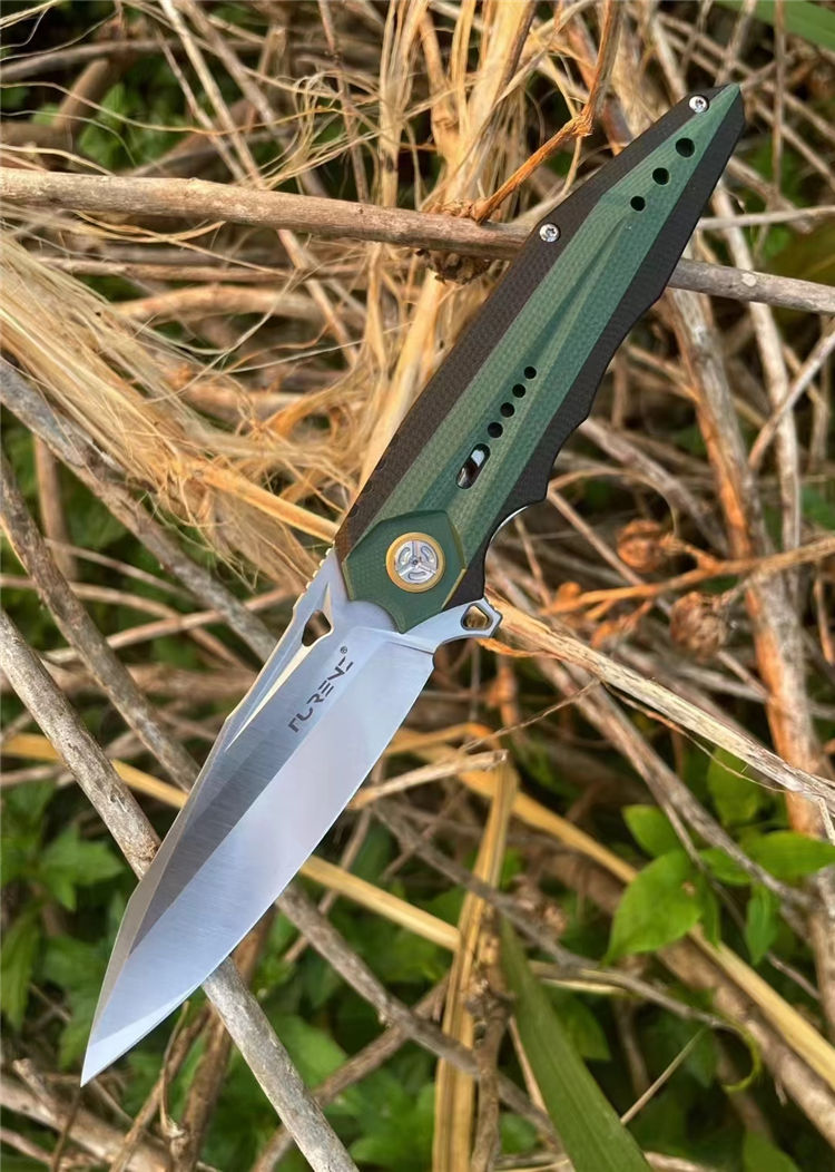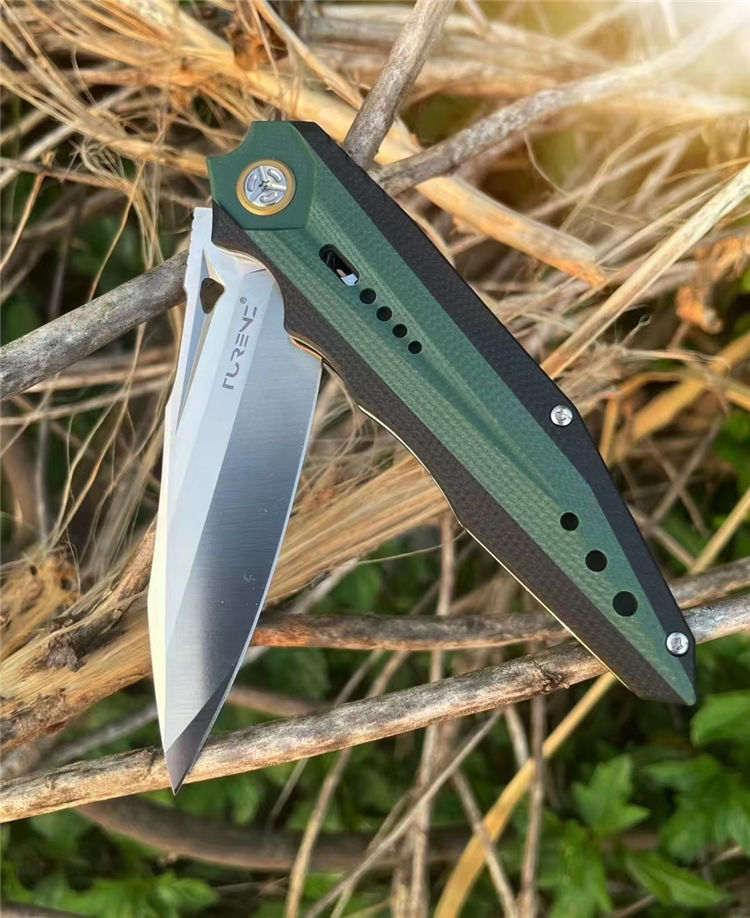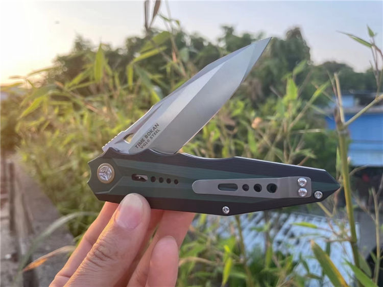 柄材:由两种不同颜色复合G10镶嵌而成、CNC加工,配钛合金夹子
