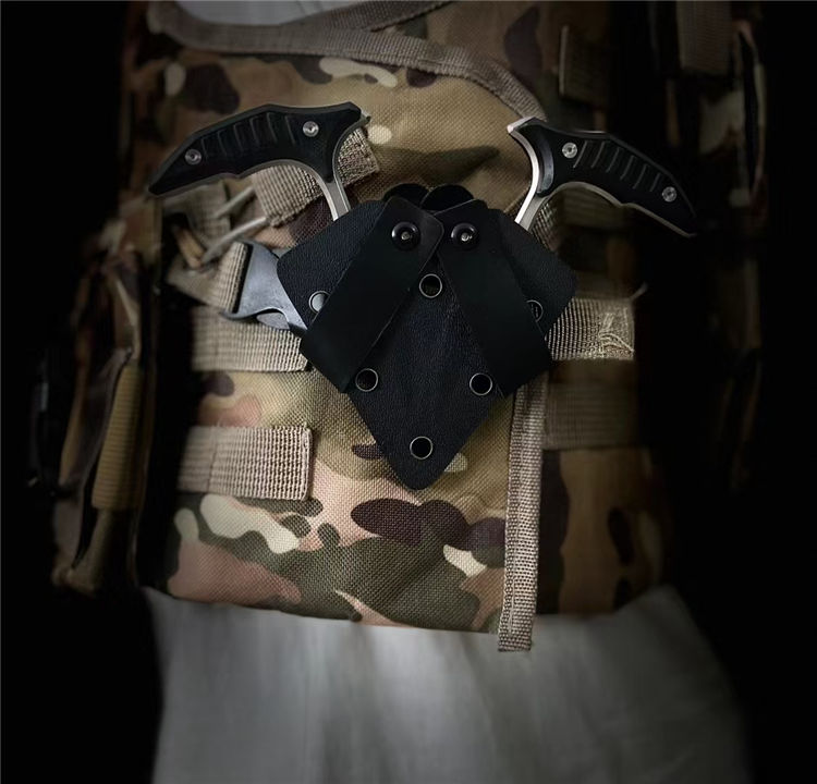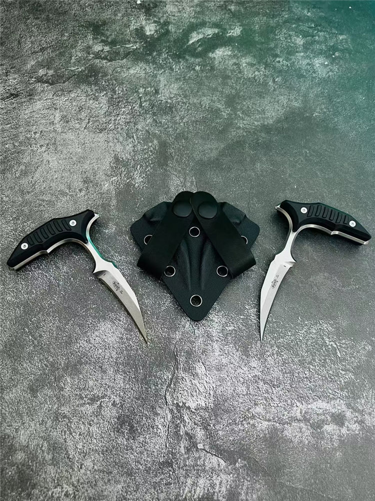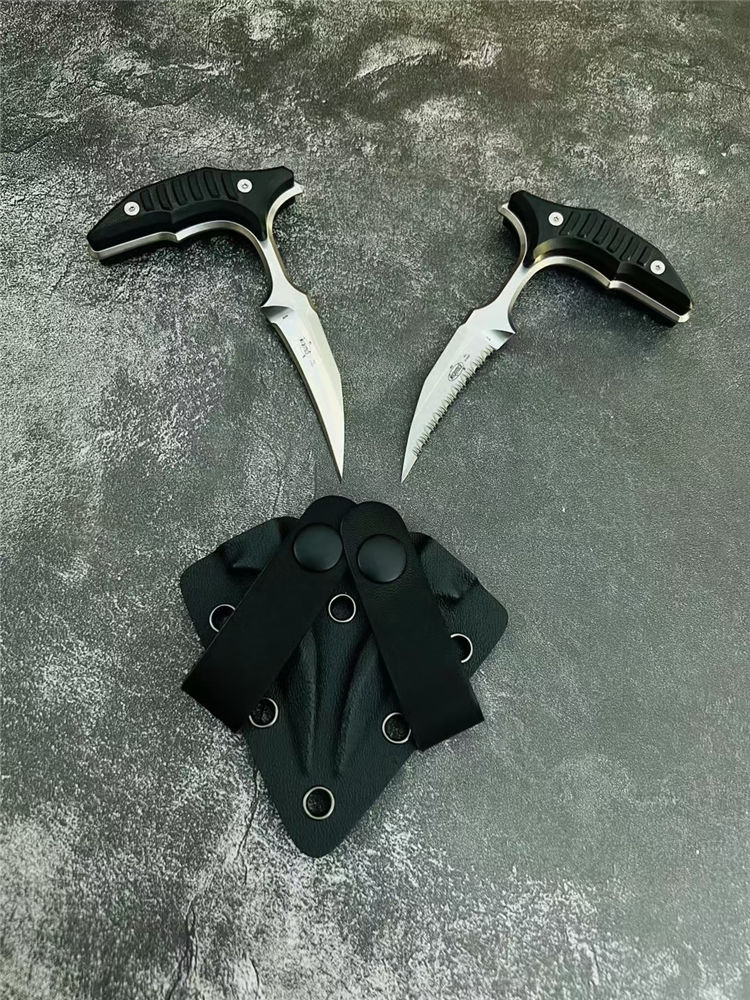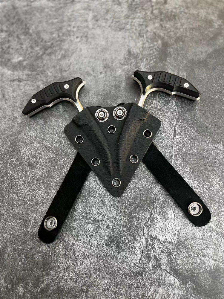 微技术双鞘版蜜蜂手刺 全长:11.2cm 刃厚:4mm 刃长:6.2cm 刃宽:1.4cm(最宽处) 柄厚:2.2cm 柄长:7.4cm 材质:918钢 净重:77g 全重:115g 两种搭配方式可选:(全刃+全刃)(全刃+全齿)