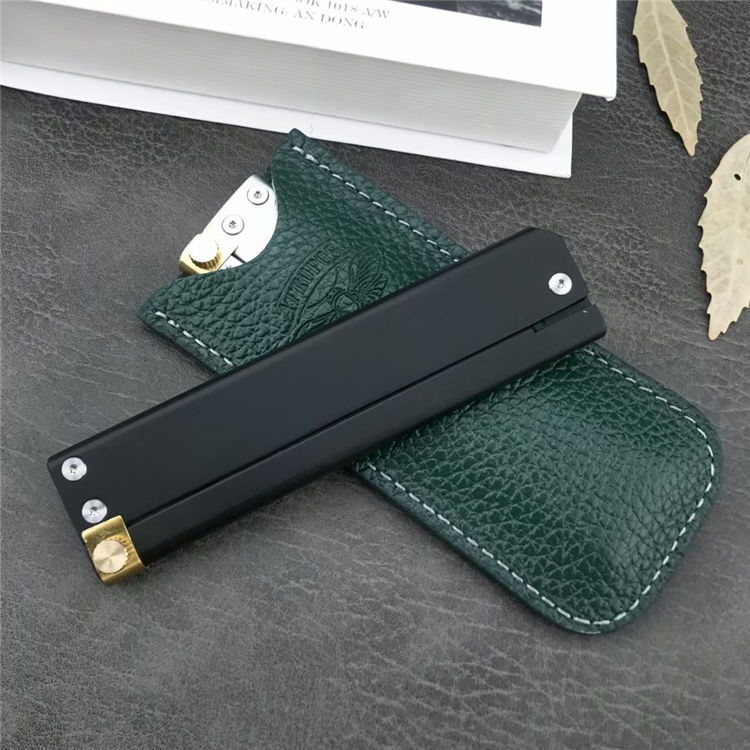 ATROPOS翻转折刀 总长:20.8CM 刃长:9CM 刃宽:2.3CM 刃厚:2.2MM 柄材:铝合金 刃材:D2 柄长:11.8 CM 柄宽: 29MM 柄厚:7.7MM 重量:72G 刀鞘:牛皮鞘