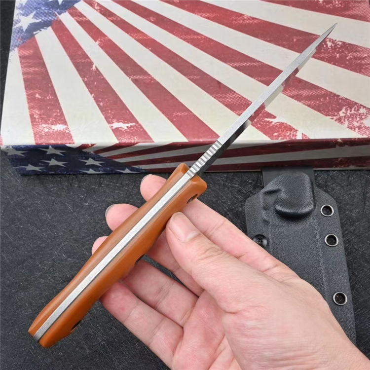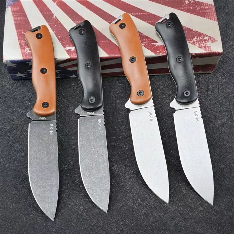 卡巴BK16直刀 全长:23.2cm 刃长:10.6cm 柄长:11.9cm 刃厚:0.4cm 刃宽:3.1cm 刀重:184g单刀,255g(刀+鞘) 毛重:357g 钢材:DC53 柄材:G10 硬度:60-61HRC 表面:白色石洗/黑色石洗 包装:礼盒 刀鞘:Kydex鞘