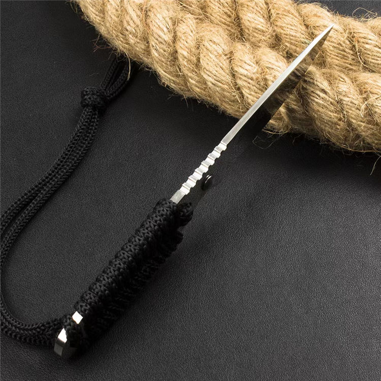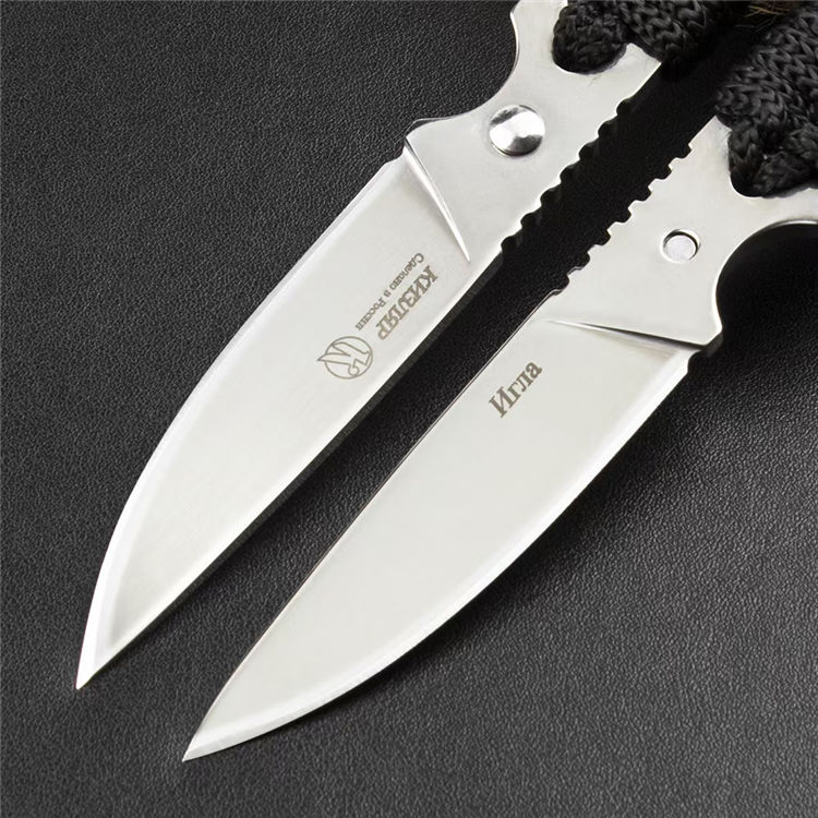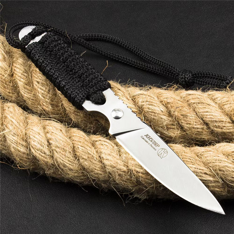 俄罗斯针锋直刀 全长:180mm 刃长:79mm 刃材:65X13 高碳不锈钢 硬度:58HRC 表面:镜面 刃厚:3mm 柄材:Paracord 绑绳 刀鞘:ABS热塑性树脂 净重:59g 重量:75g(含刀鞘)