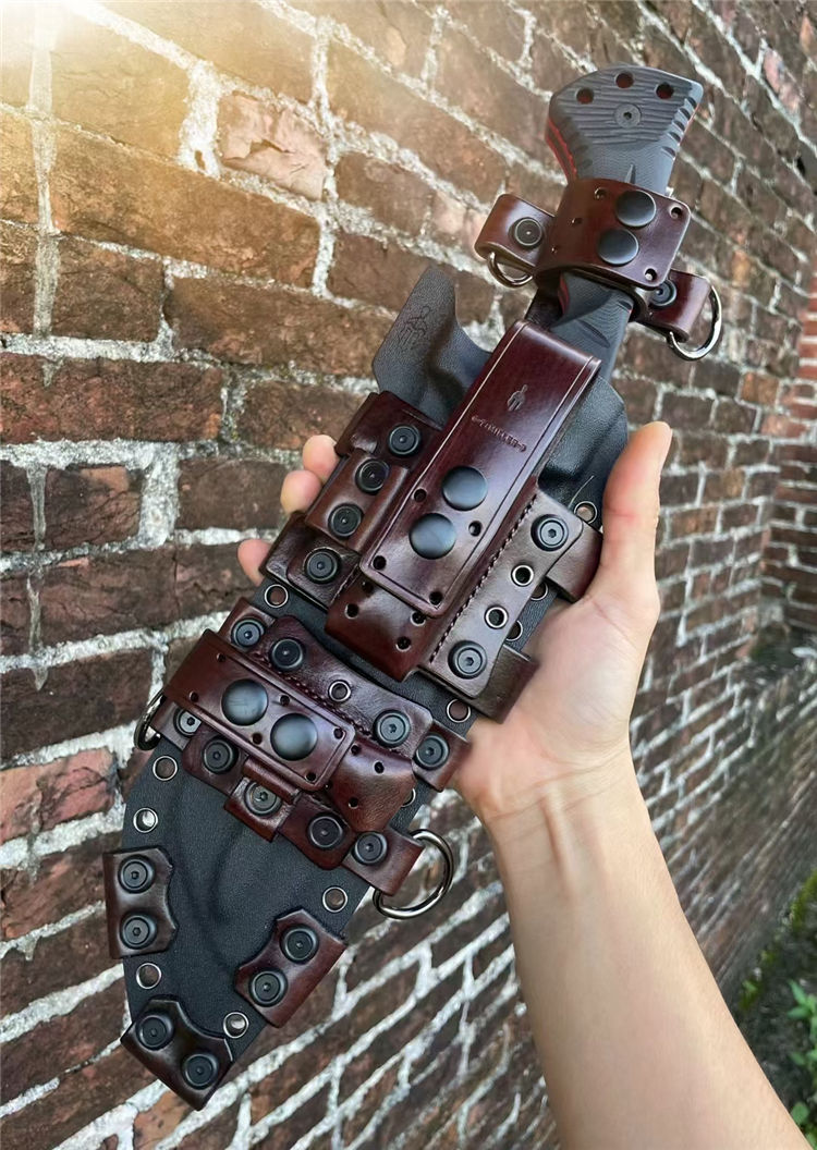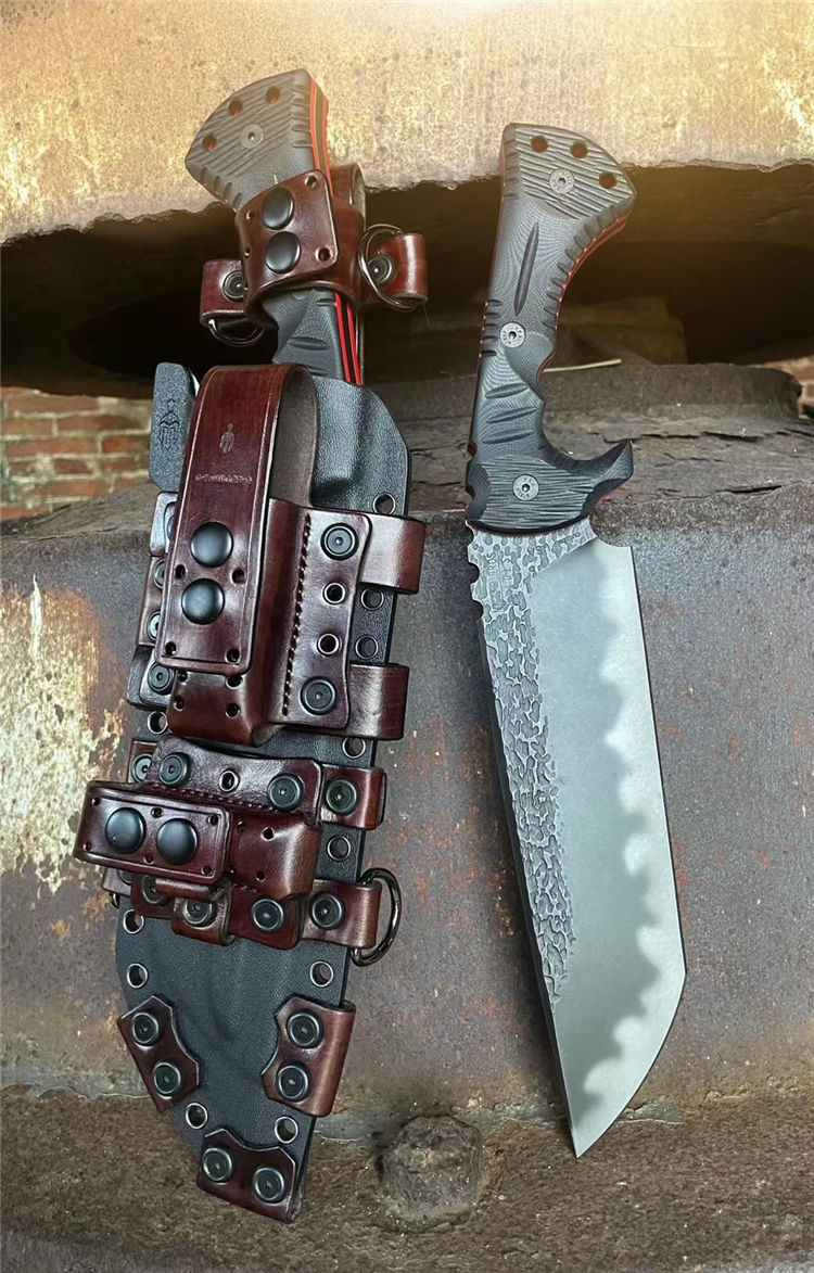 手柄:黑色与红色G10复合特殊材料、表面进行手工制作防滑纹理,保持良好的舒适度与手感