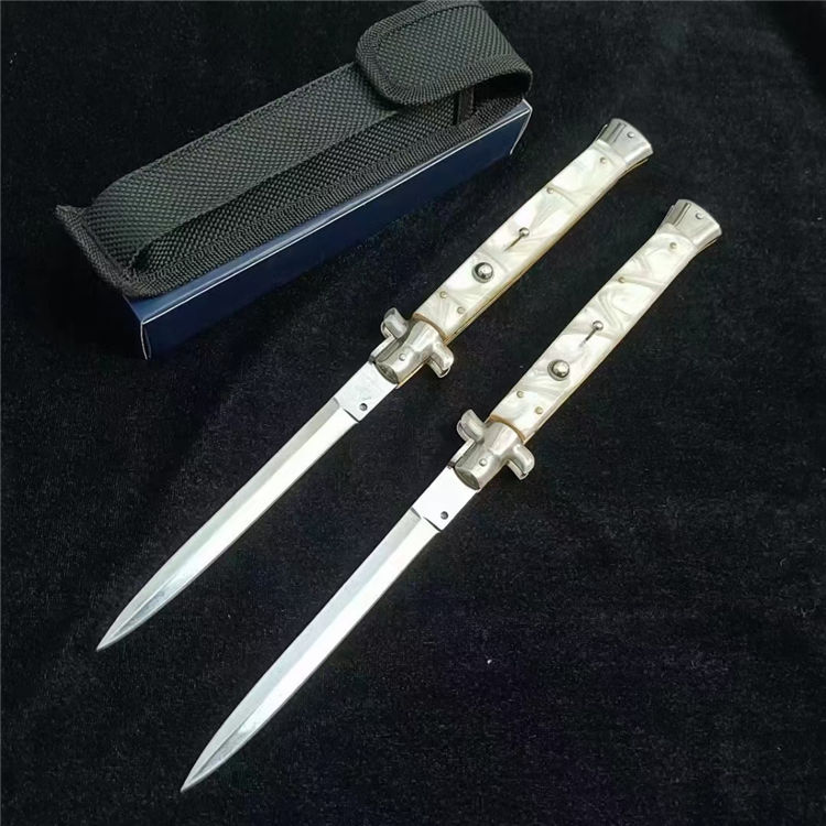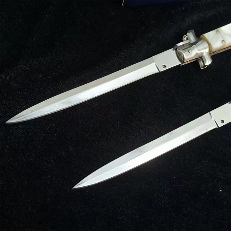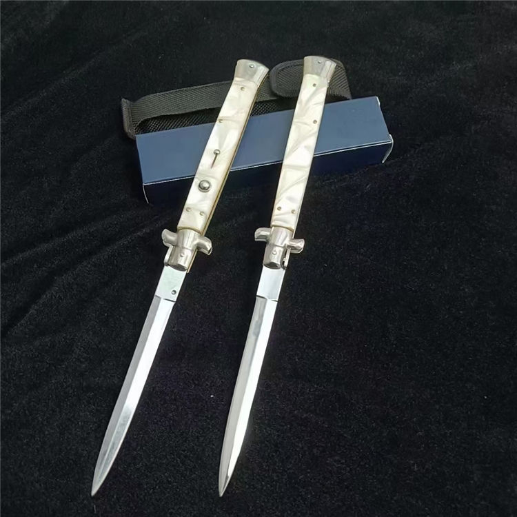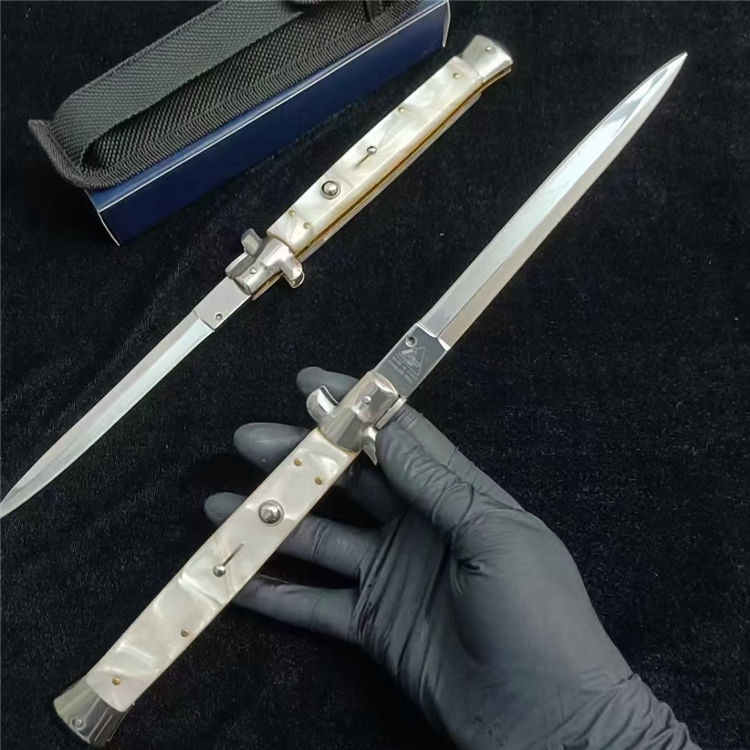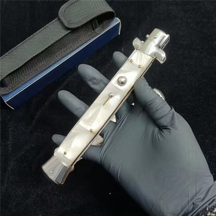 黑手党珍珠白柄13寸AKC侧开跳刀