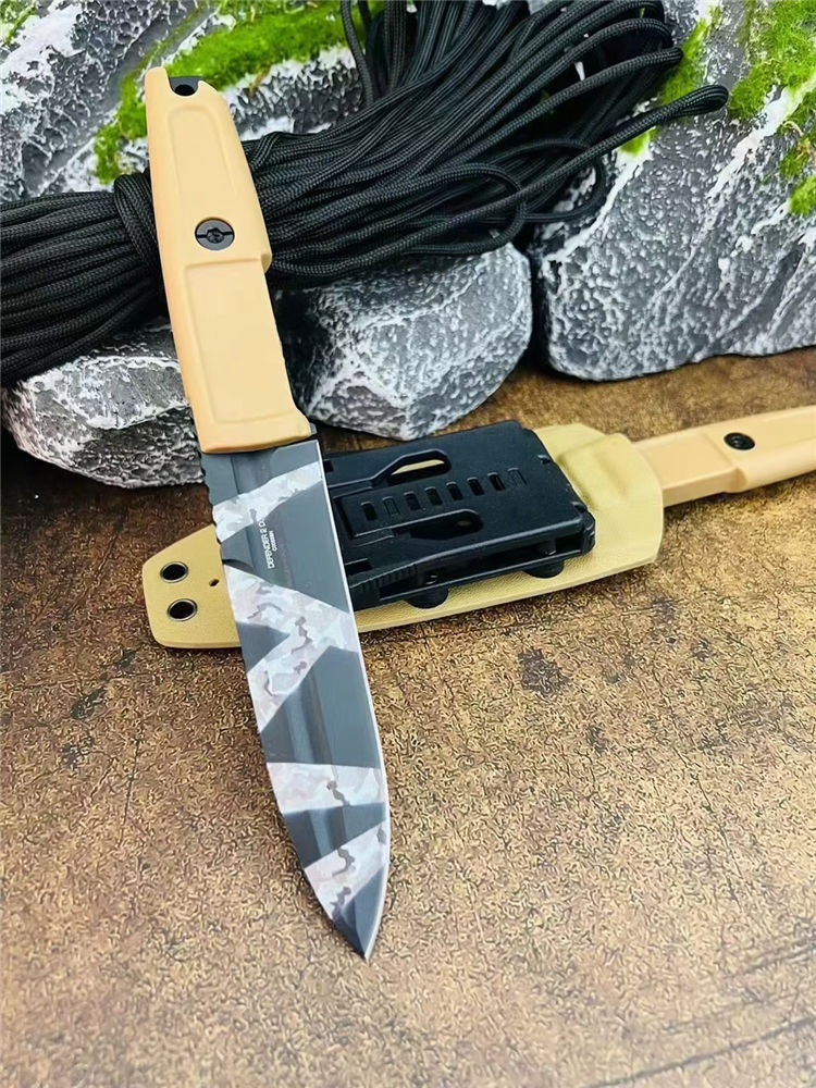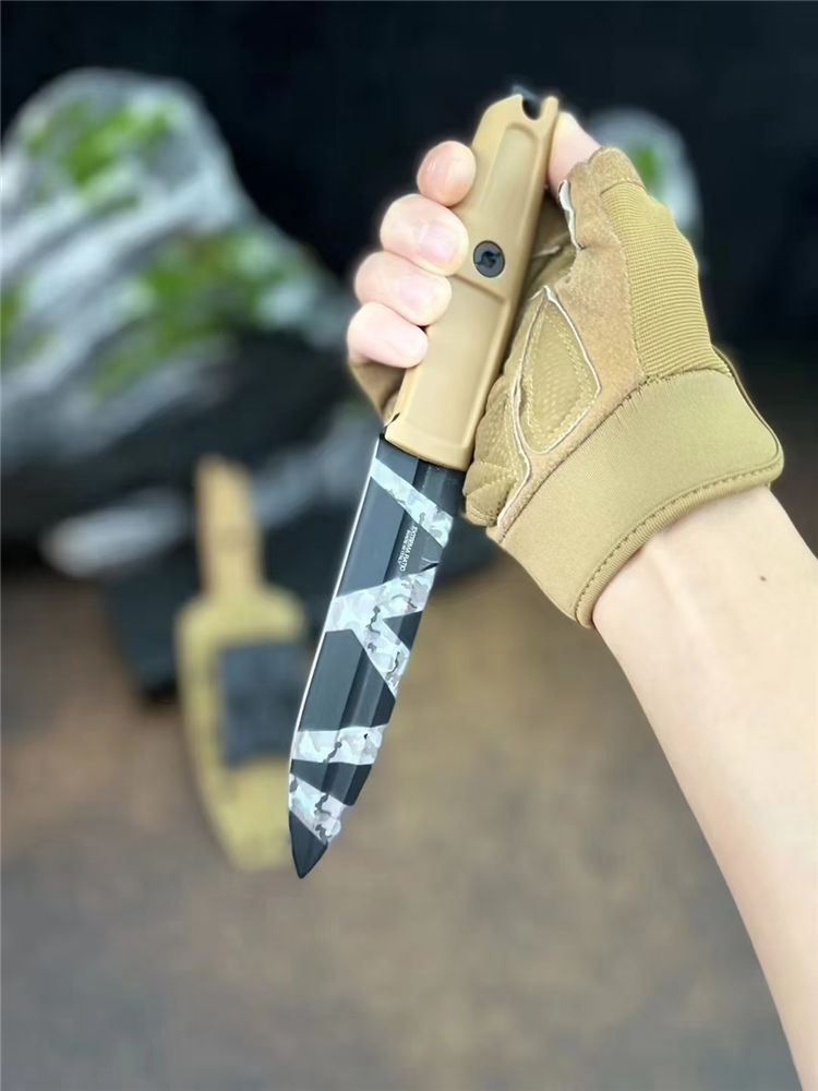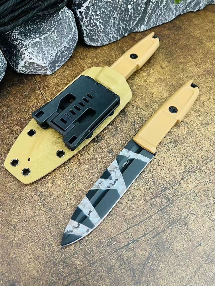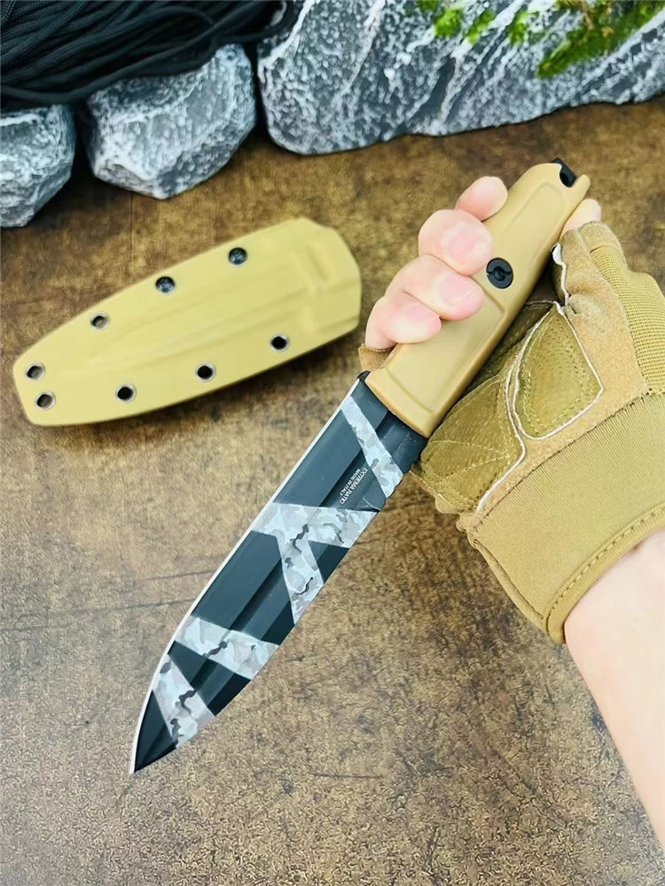 极端武力带槽版侦察兵直刀 全长:23.5cm 刃长:11.5cm 厚度:5mm 材质:D2钢 刀鞘:战术K鞘