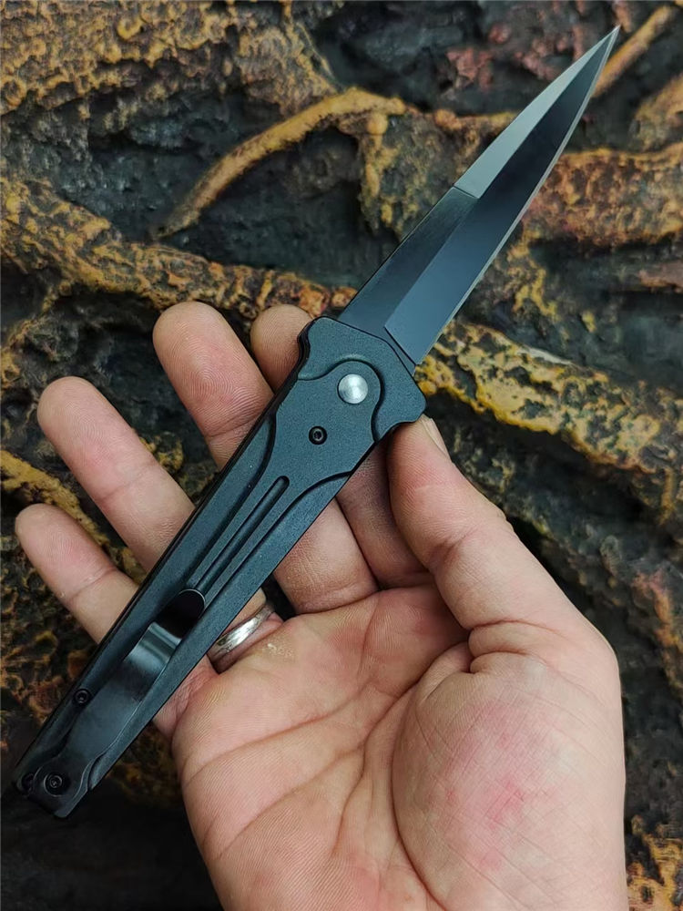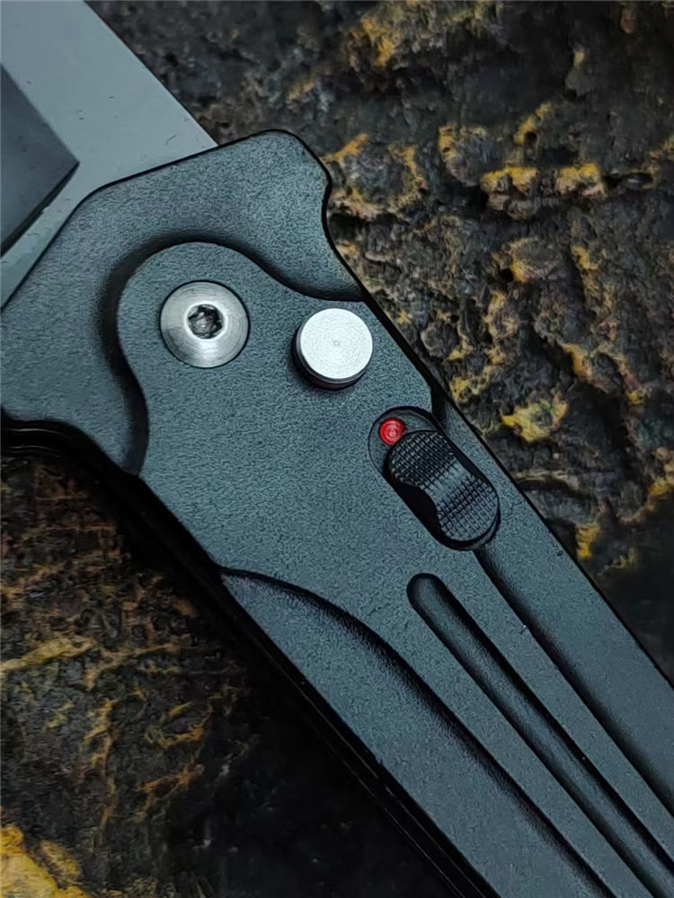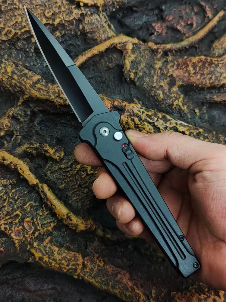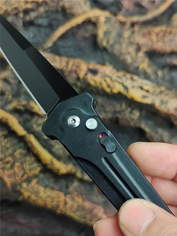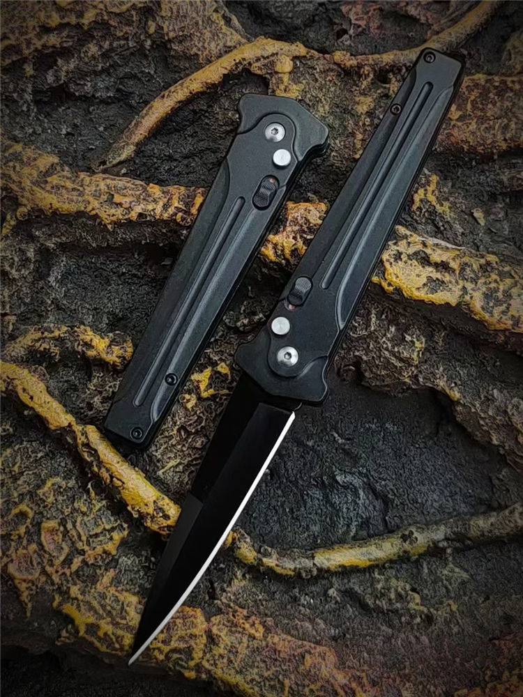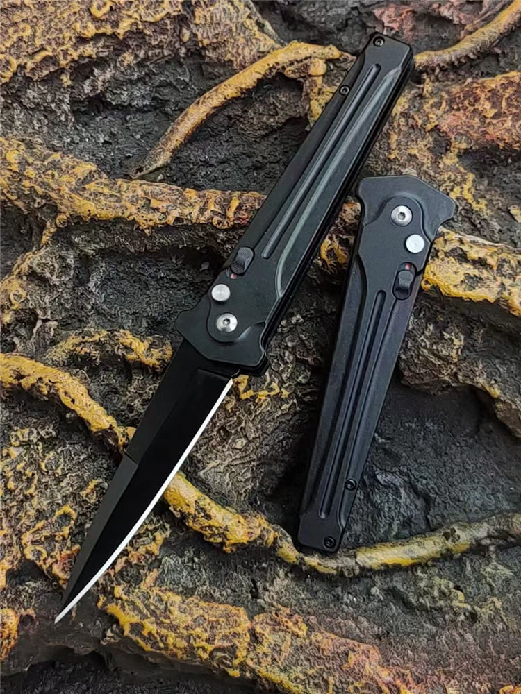 黑蜈蚣侧开跳刀 全长:22.5cm 刃长:9.5cm 柄长:13cm 刃厚:3.5mm 刃材:7Cr14Mov高碳钢 硬度:58-59HRC 刀重:120g 毛重:155g 表面:镀黑钛 柄材:高级工程ABS+钢片发黑 锁闭:侧跳弹开 其他:带制锁防误开