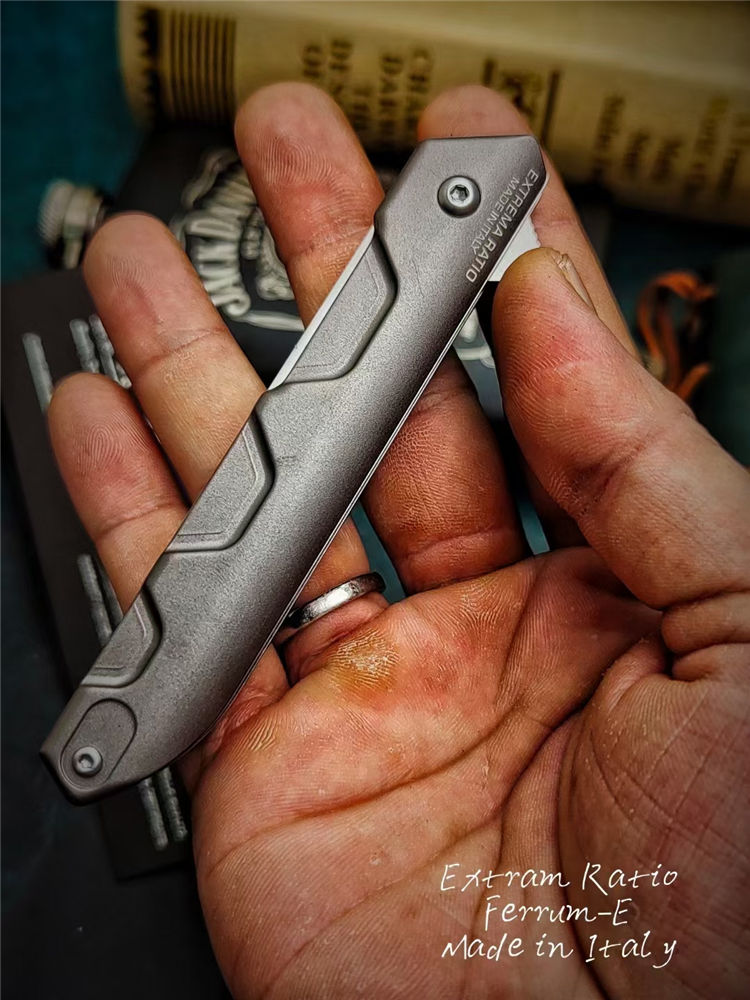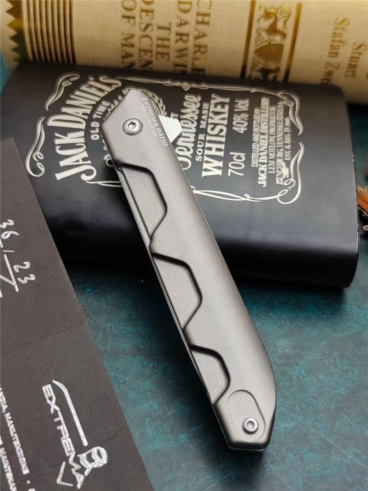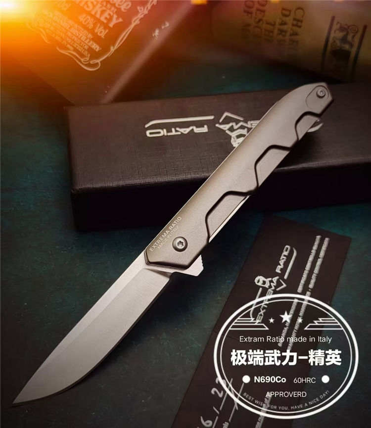 极端武力精英折刀 全长:185mm 刃长:85mm 柄长:115mm 刃材:N690Co钢 刃厚:2.8mm 表面:精细砂光 柄材:6260阳极氧化防腐铝 硬度:59-60HRC 净重:88g 毛重:130g(含包装) 包装:黑色礼品盒
