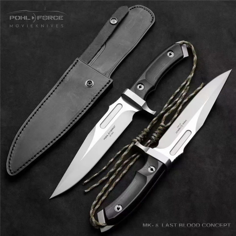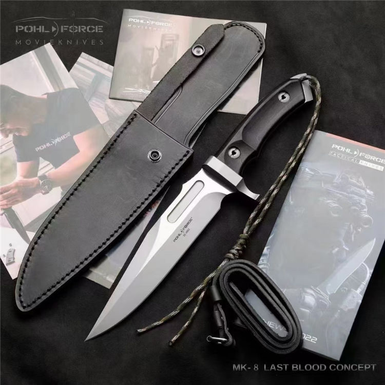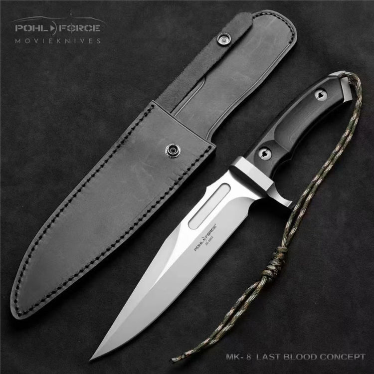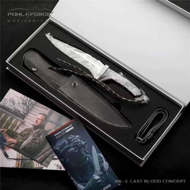 波尔武力CNC2版MK8直刀 全长:31CM 刃长:20CM 刃厚:0.6CM 钢材:德国CPM-D2钢 硬度:62HRC 重量:538克 皮套:选用意大利植鞣牛皮A+级上等牛皮,手工缝线