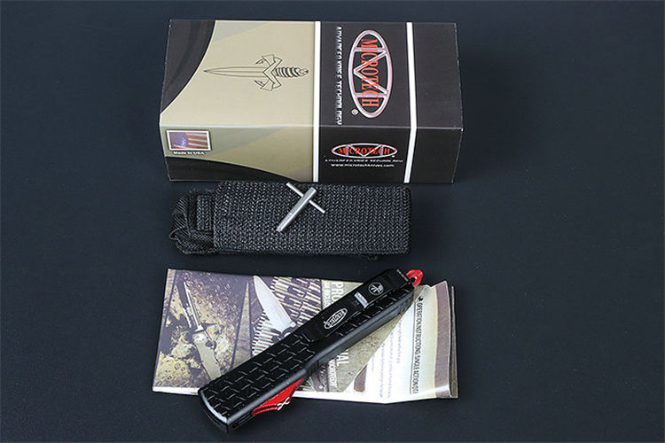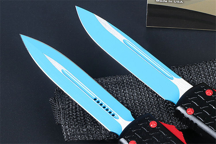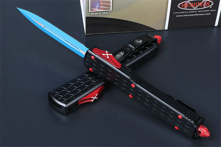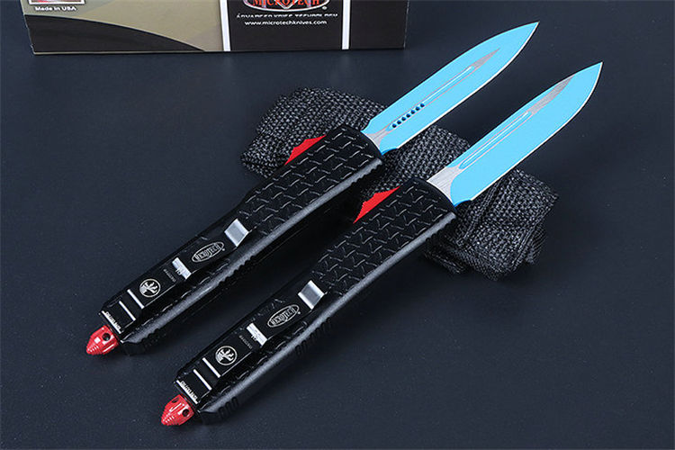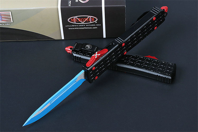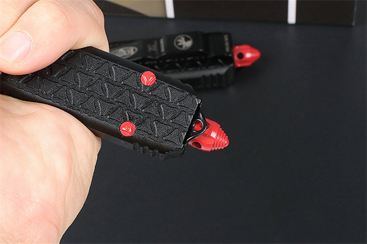 微技术A08直出跳刀 全长:22.5CM 刃长:8.8CM 柄长:13.7CM 刃宽:1.8M 刃厚:0.31 CM 刃材:5CR13 柄材:T6铝合金 刀型:直跳 锁定:按钮锁 刀重:100克 重量:180克(含包装) 附件:尼龙套,说明书,彩盒,送拆刀工具