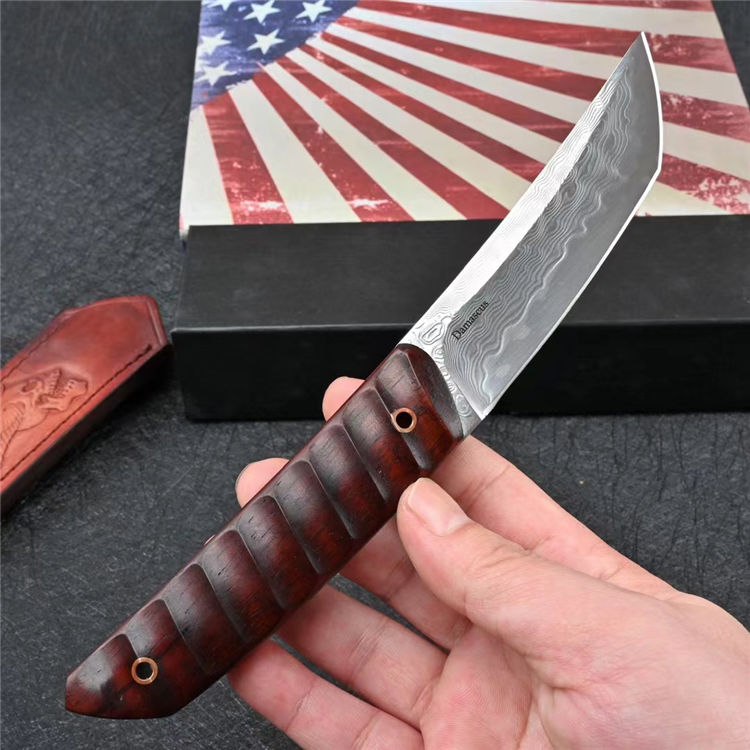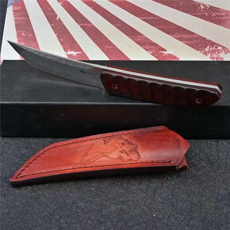 武田信玄たけだ しんげん因任甲斐守,并且具有非凡的军事才能,被称为“甲斐之虎”。有“战国第一名将”之称,也被誉为“战国第一兵法家”。该款作品采用锻打大马士革钢材手工研磨,性能卓越。手柄材质为黄檀木,打磨符合人体工学的纹路,徒手或是戴手套都可以灵活掌控。日式风格,经淬火整刀型两端上翘,使得切割面积增大,这是一款不可多得的实用、收藏兼备的作品
