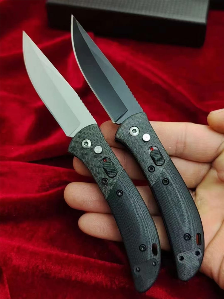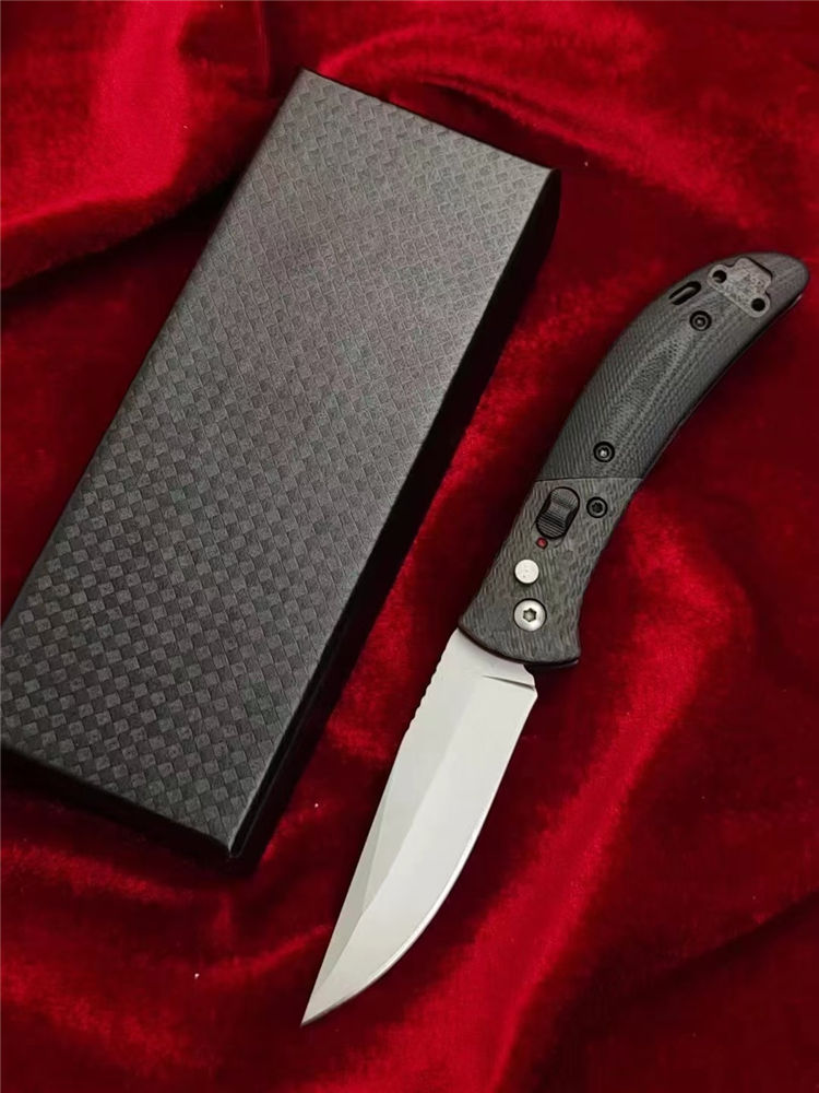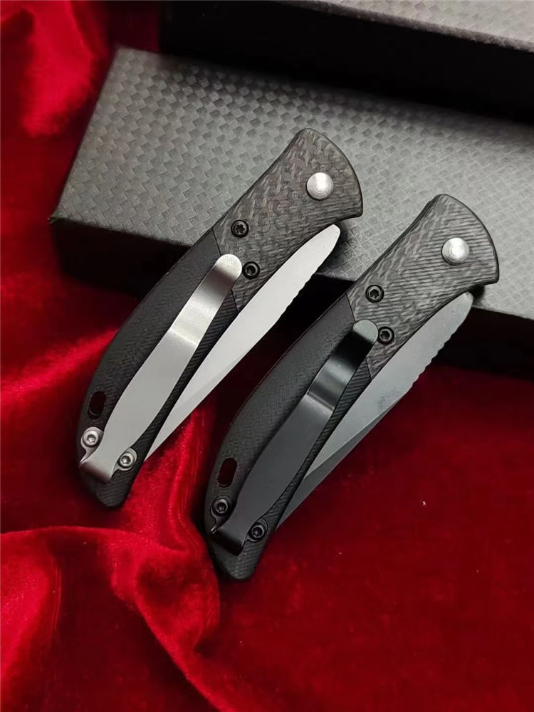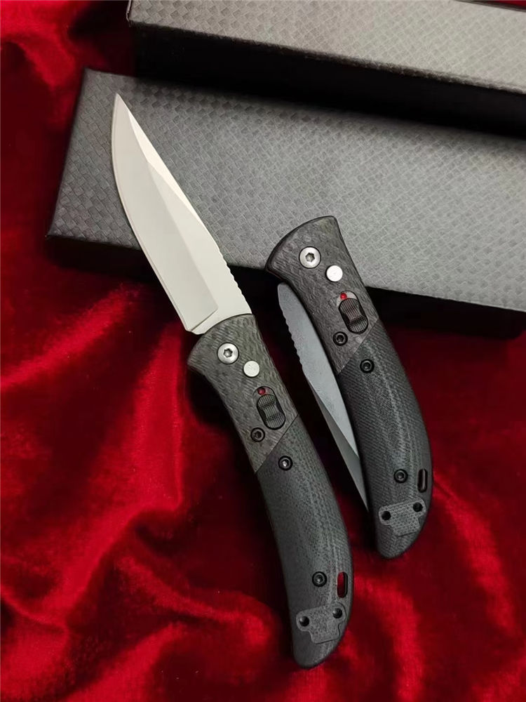 小豺狼侧开跳刀 全长:168mm 刃长:75mm 柄长:95mm 刃厚:2.4mm 刃材:7Cr14Mov高碳钢 硬度:58-59HRC 刀重:68g 毛重:102g 表面:滚珠喷砂镀银钛\黑钛 柄材:G10+碳纤片 锁闭:侧跳弹开 其他:带制锁防误开