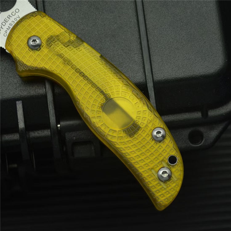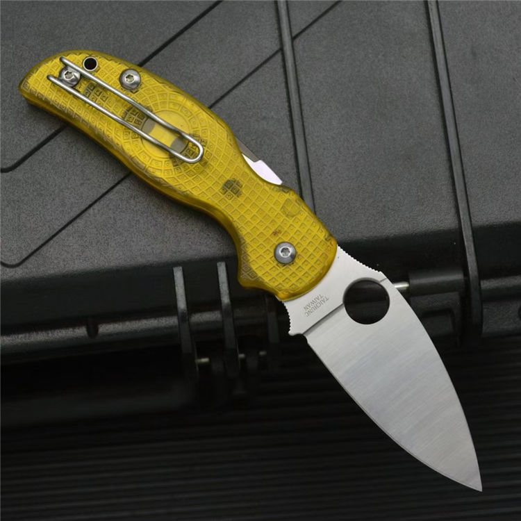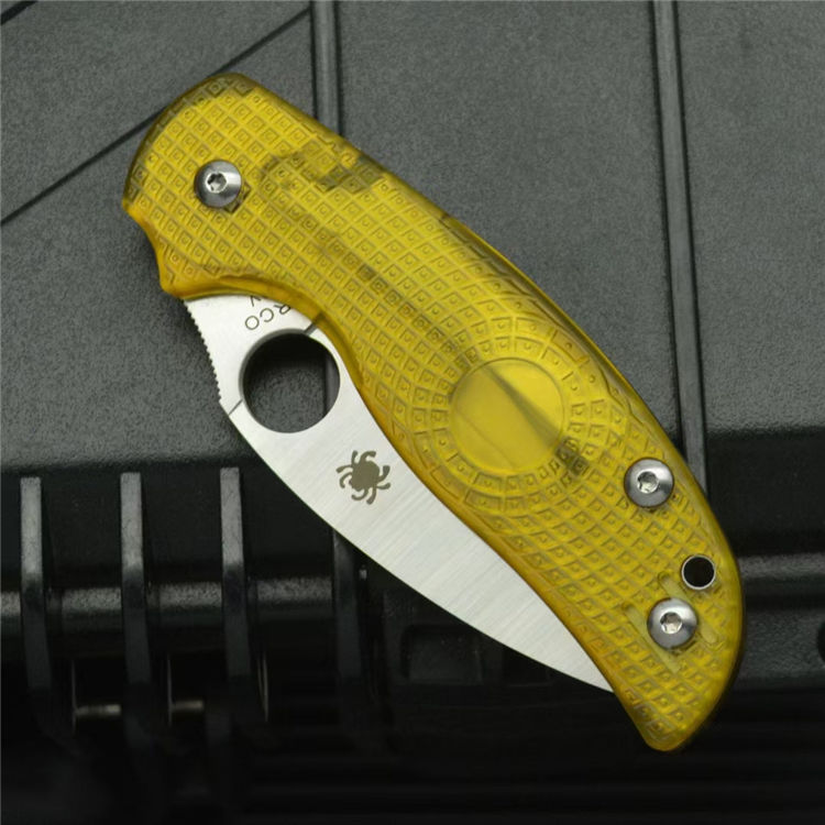 PEI版蜘蛛C123PBK折刀 总长:180mm 刃长:75mm 闭合:105mm 厚度:3.2 mm 材料:9cr18 表面:数控磨砂光钢本色 系统:球轴承系统 柄材:PEI 硬度:58-60HRC 刀重:135克 配置:背衬口袋夹 包装:彩色包装盒