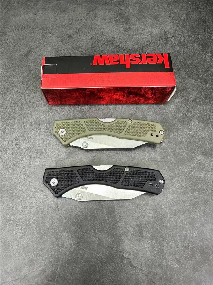 卡秀2033折刀 总长:19CM 刃长:8.5CM 刃厚:0.25CM 刃材:8CR14MOV 硬度:59HRC 手柄:尼龙加纤 原厂包装盒