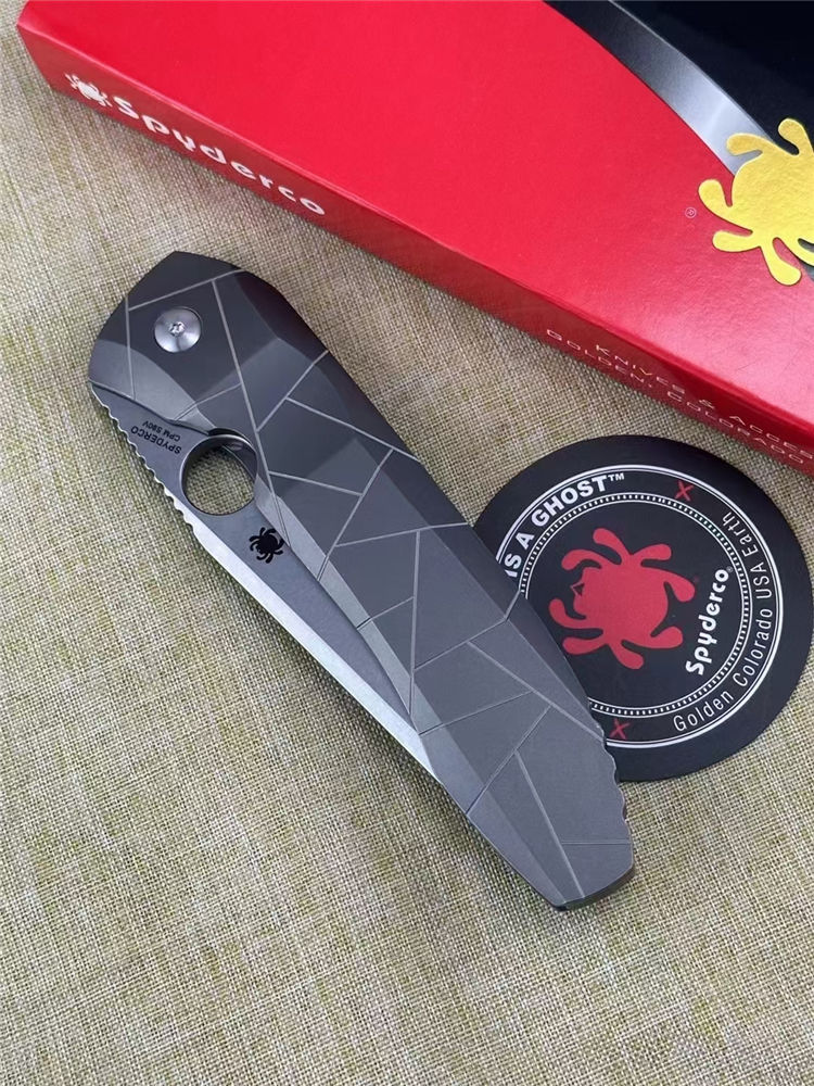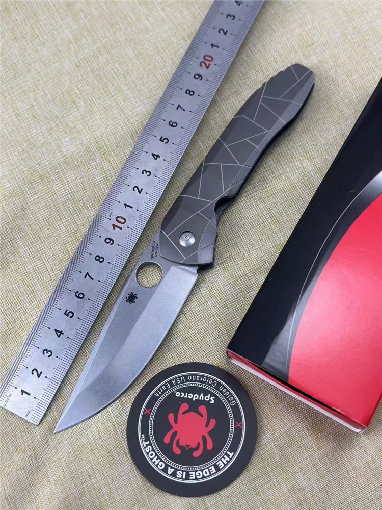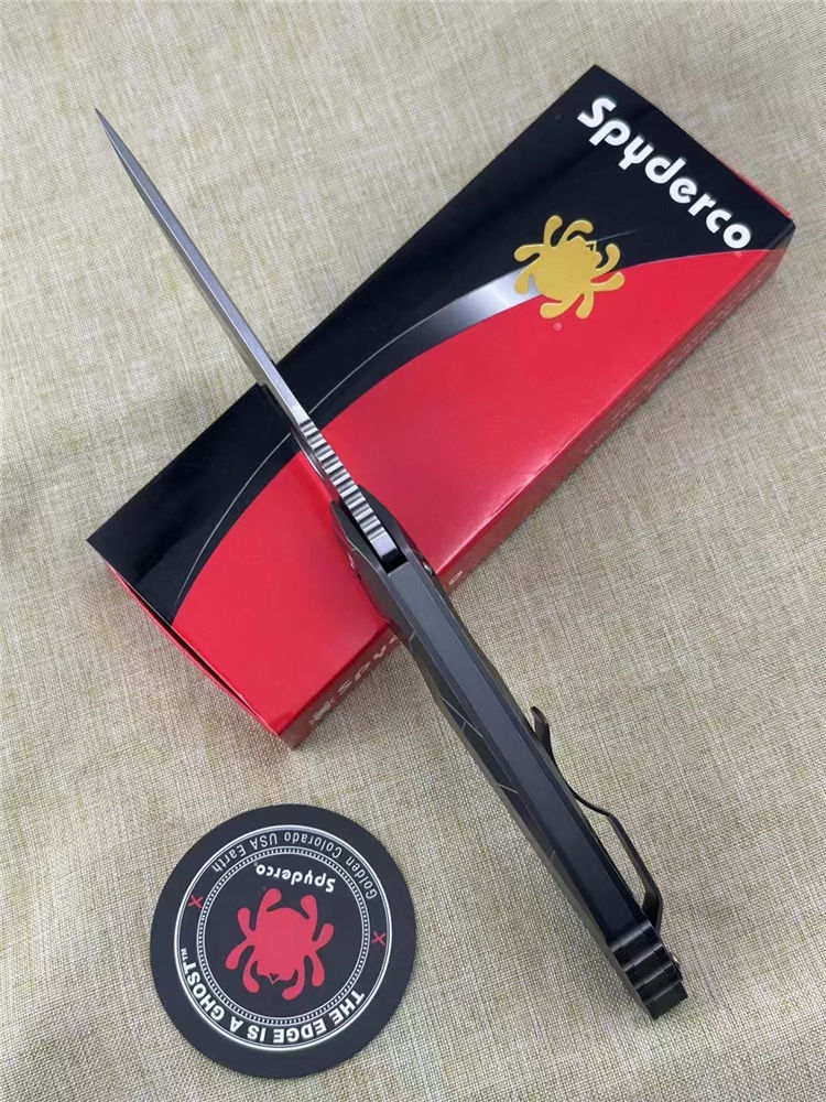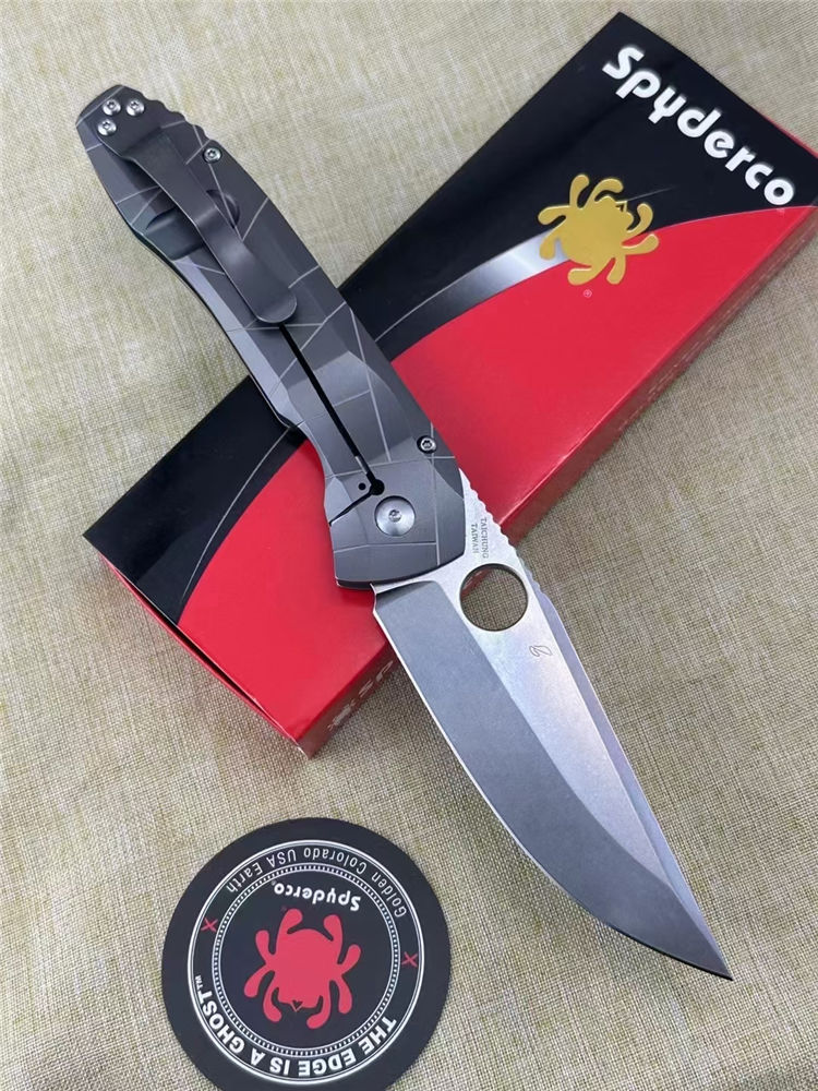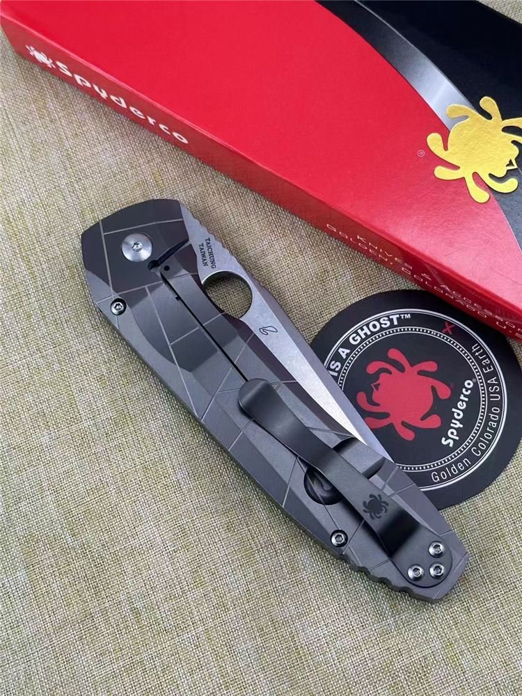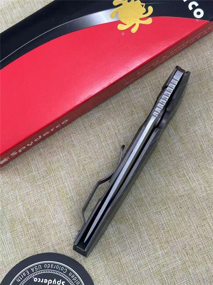 蜘蛛C199TIP折刀 全长:22CM 刃长:9.5CM 柄长:12.5CM 刃厚:0.4CM 刃材:CPMS90V 硬度:60HRC 重量:145G 柄材:钛合金TC4,龙骨钛合金TC4,背夹钛合金TC4,螺丝420J2钢,轴承陶瓷珠轴承,独立钢锁头,陶瓷定位珠