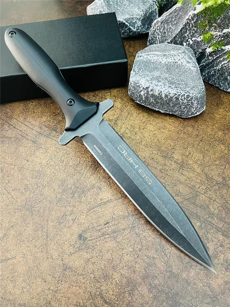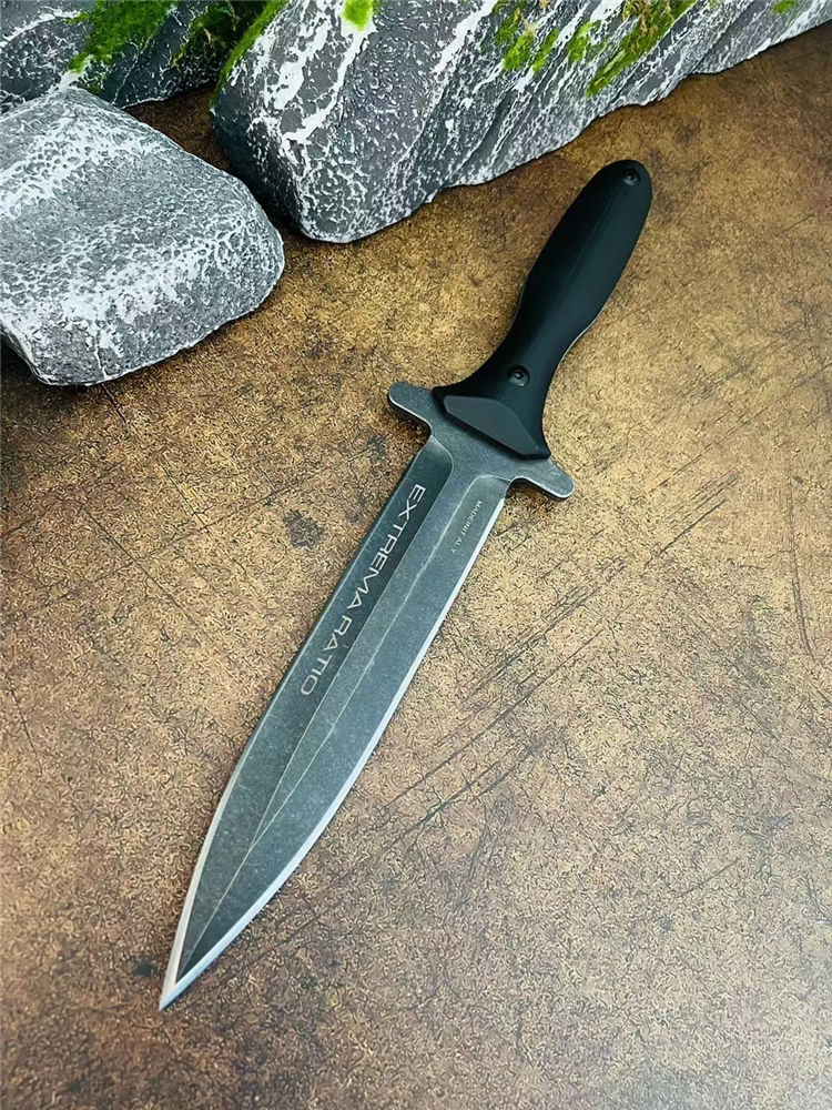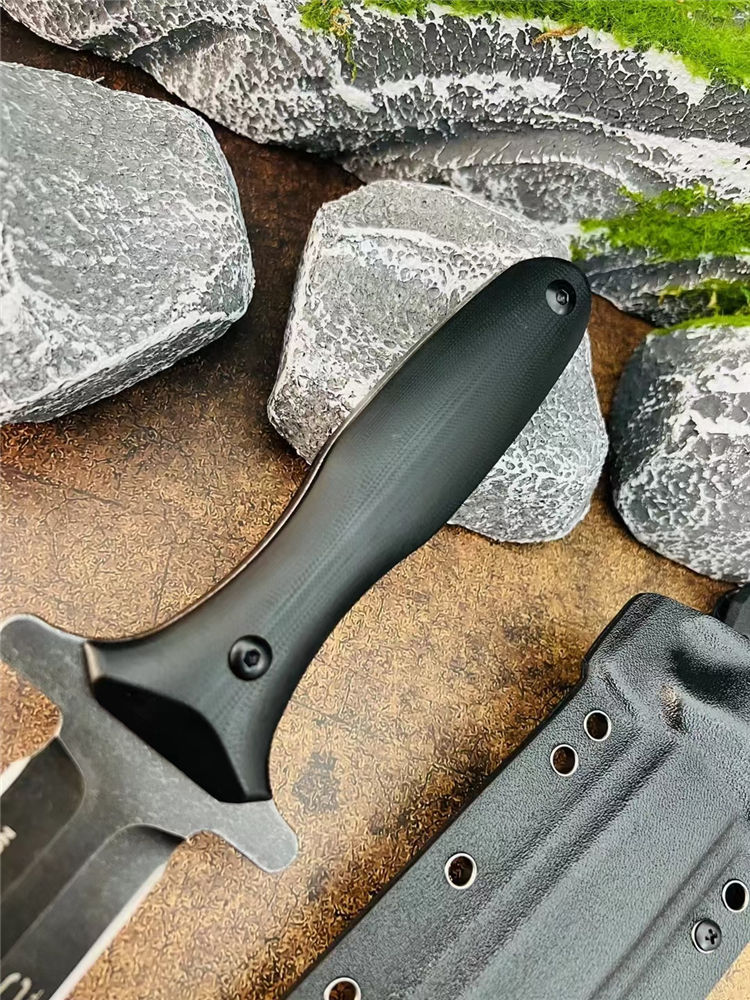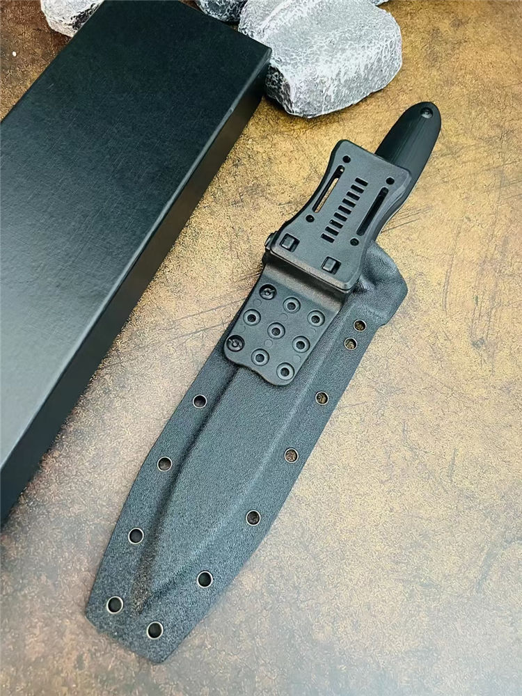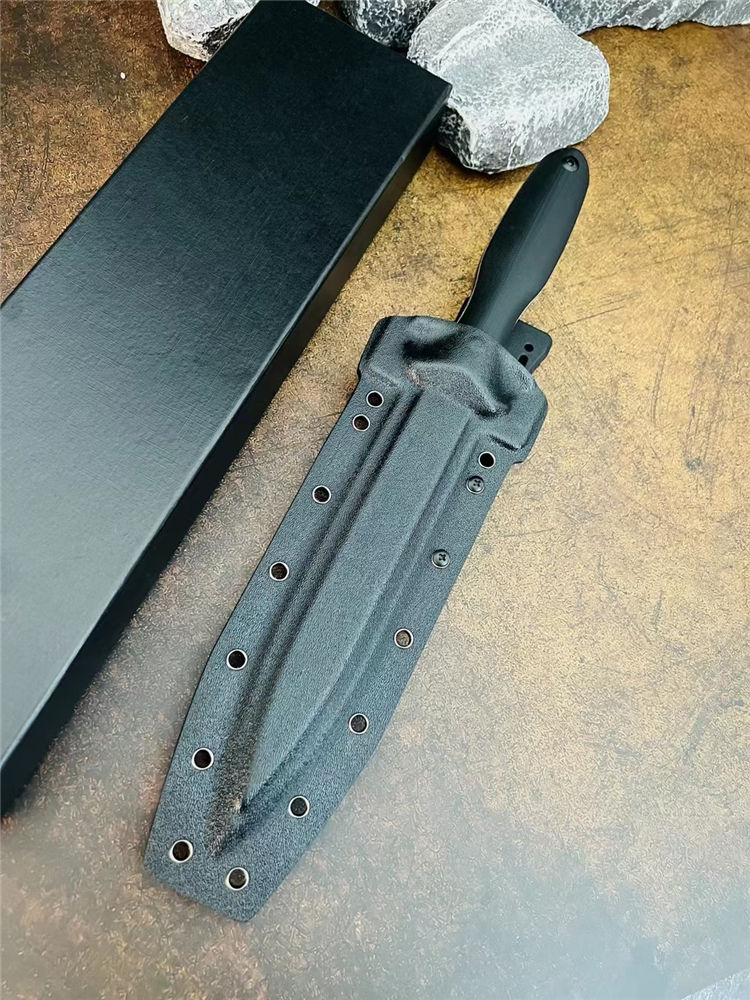 极端武力阿尔法直刀 总长:37cm 刃长:20.5cm 刃厚:5.0mm 刃宽:4mm 柄长:15.5cm 钢材:高性能1950钢 硬度:59HRC 表面:CNC数控水磨+沧桑石洗 手柄:加厚G10黑色 重量:655g(含鞘) 裸刀:498g 刀鞘:进口热塑加硬K版鞘 包装:黑色盒子
