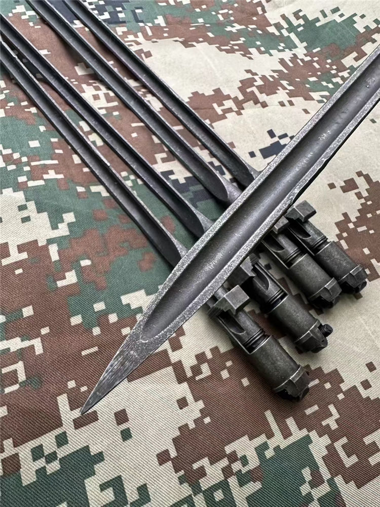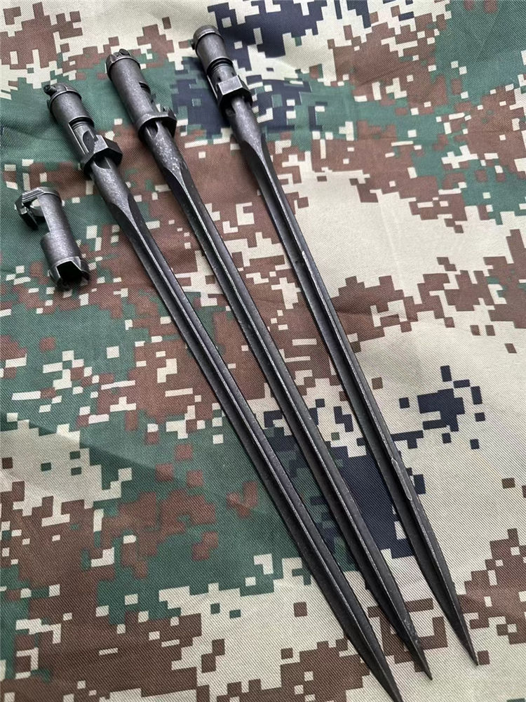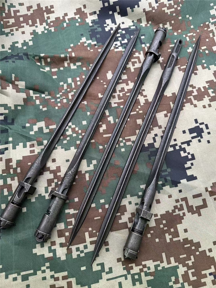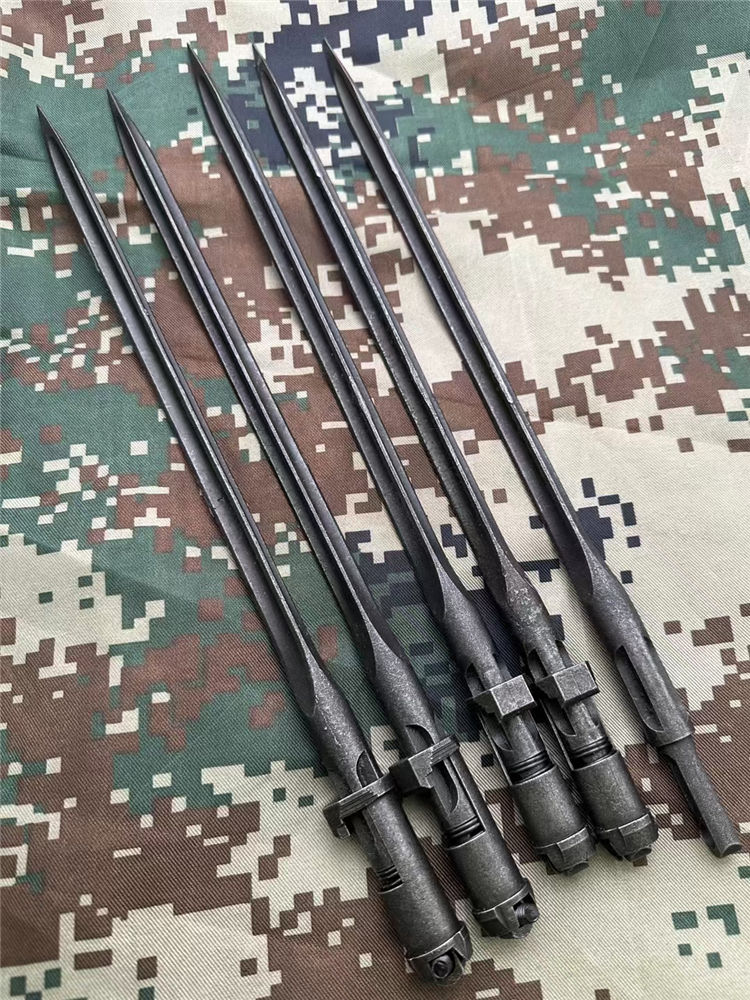 三棱刮刀式刺刀,大大提高了枪刺的强度、刚度和刺入深度,仅用于63式自动步枪,是中国步枪最后一种折叠刺,也是一个时代的终结