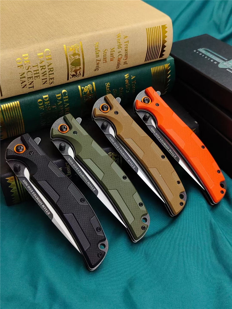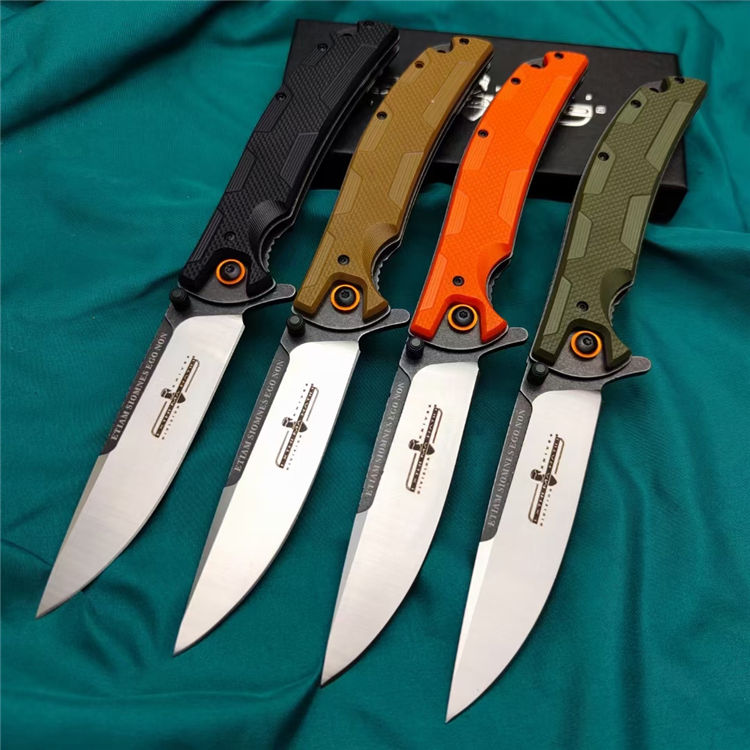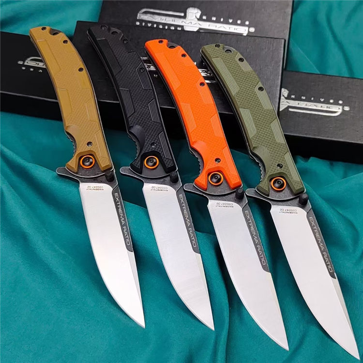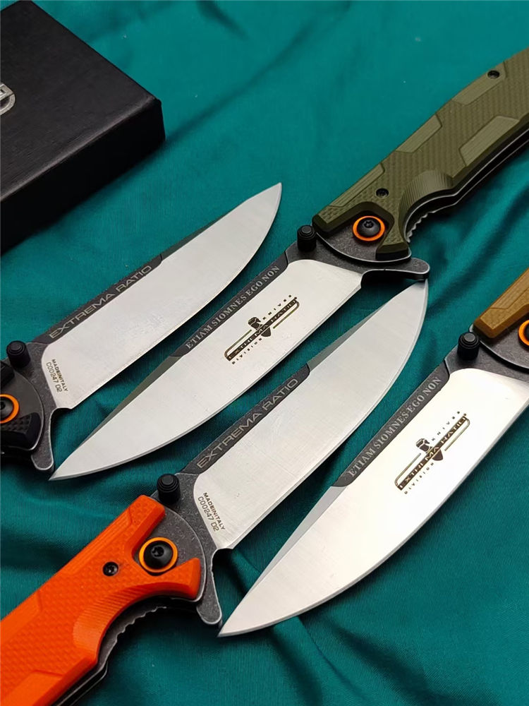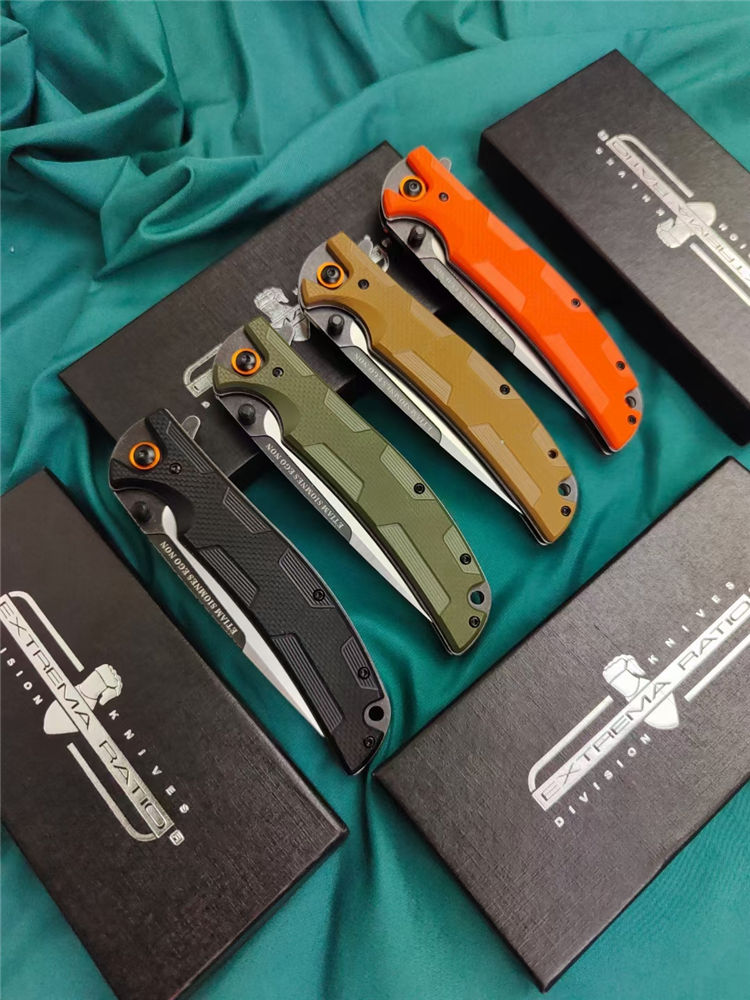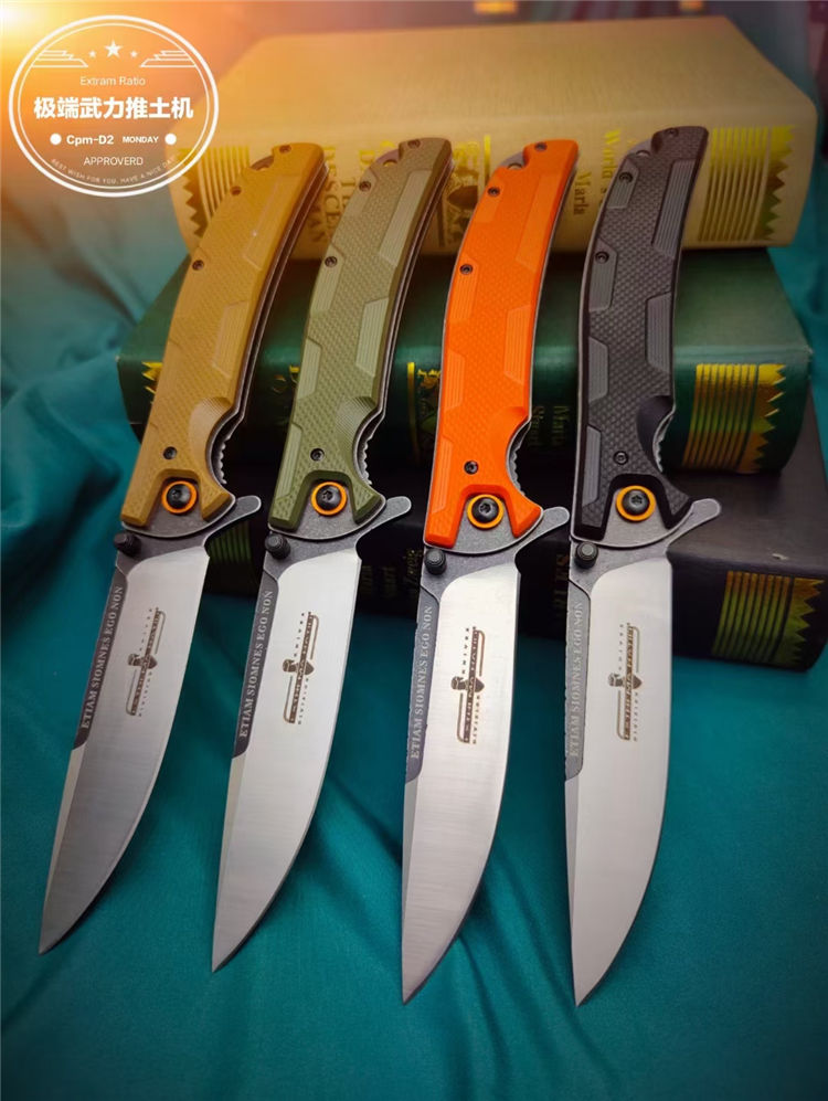 极端武力推土机折刀 全长:250mm 刃长:110mm 柄长:140m 刃宽:28mm最宽处 刃厚:3.5mm 刃材:CPM-D2钢 刀重:190g 毛重:240g(含包装盒) 硬度:59-60HRC 表面:CNC数控磨+精细拉丝砂光 柄材:高密度G10 结构:滚珠轴承 包装:出口原包装极端武力EVA黑礼盒