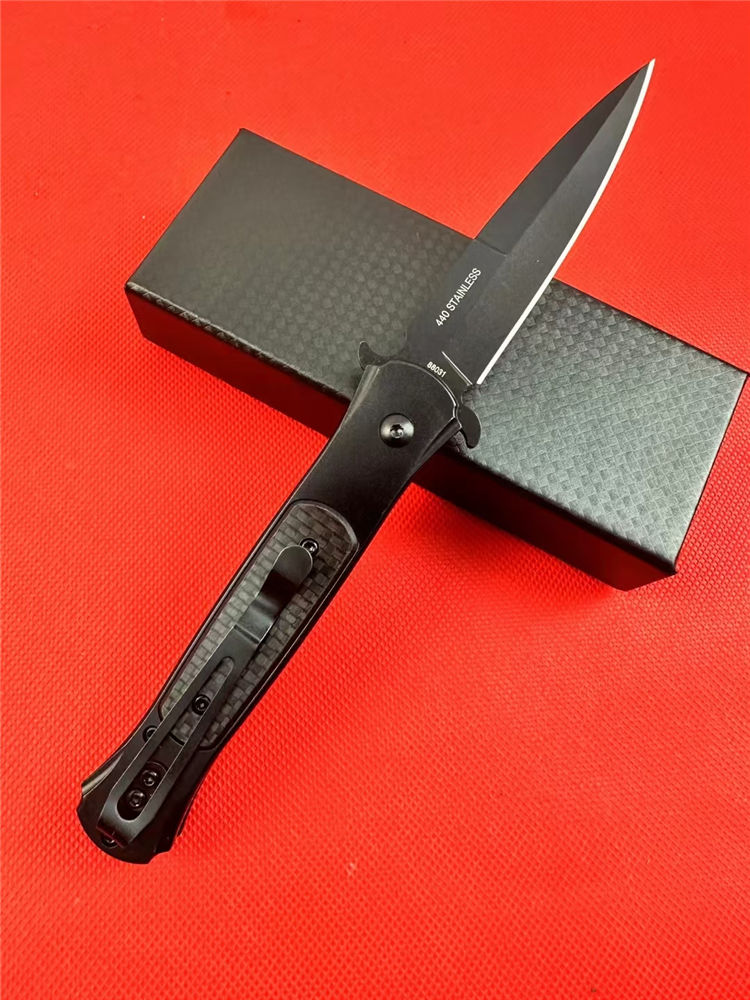 博克88031侧开跳刀 总长:23CM 刃长:8.3CM 刃宽:1.8CM 刃厚:3.1MM 材质:440s 柄材:碳纤垫片 柄长:11.7CM 柄宽:19MM 柄厚:13MM 重量:153g