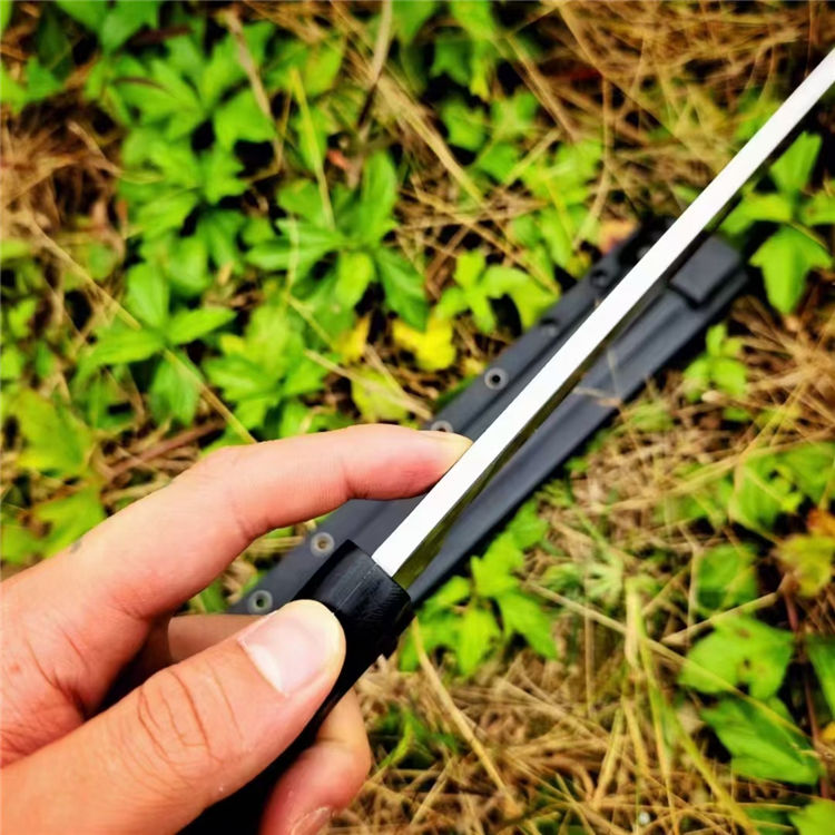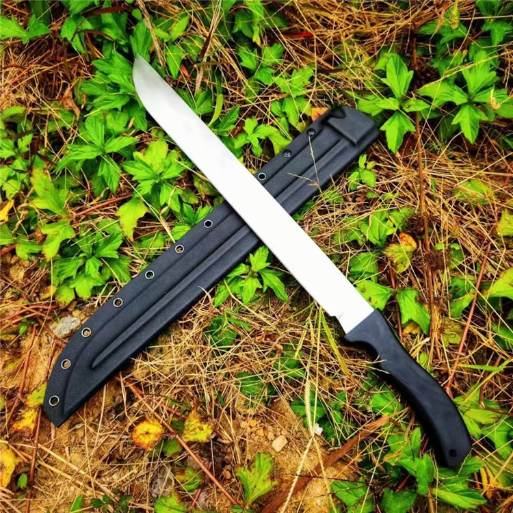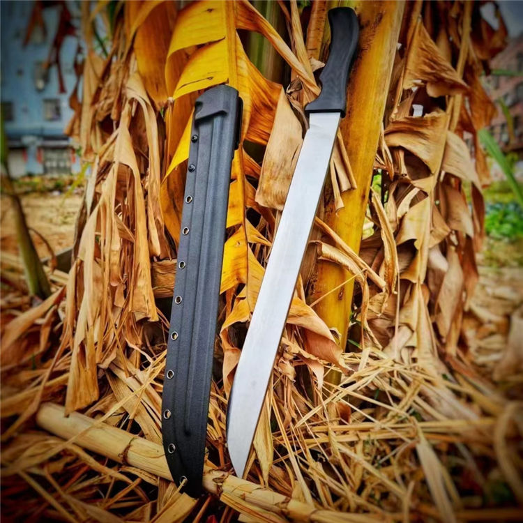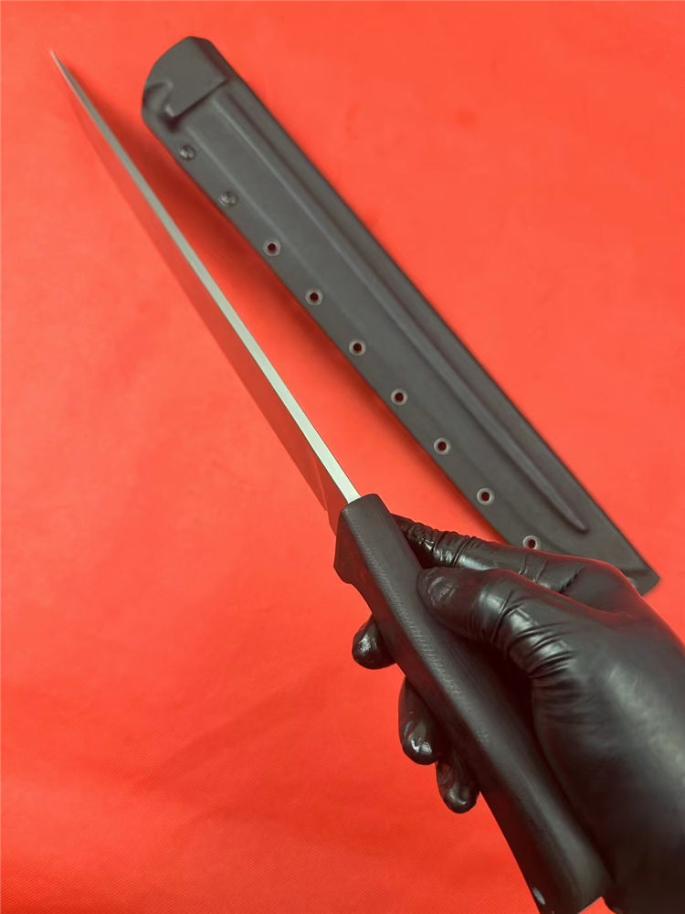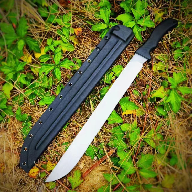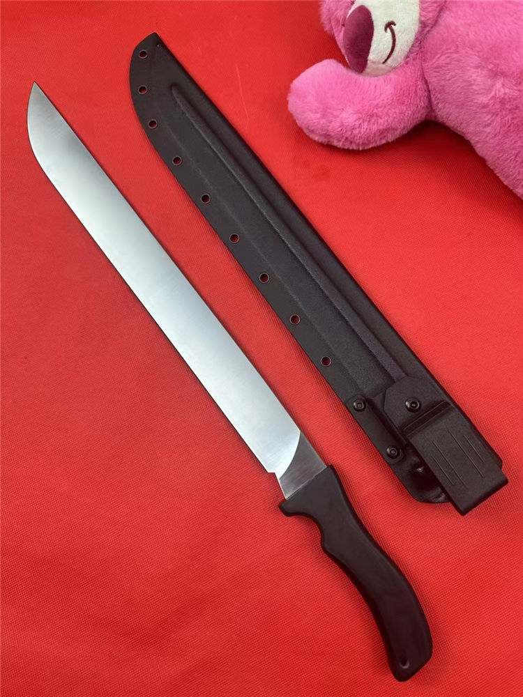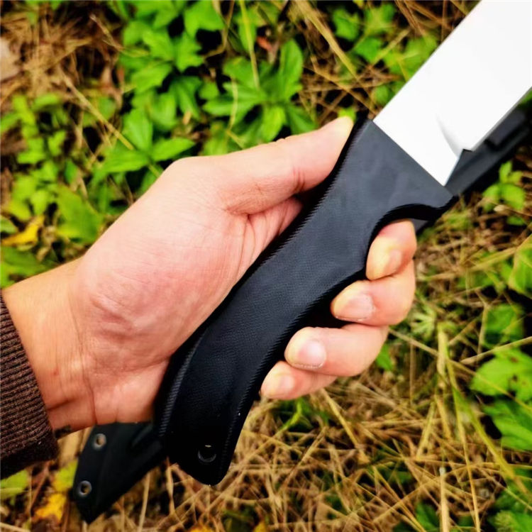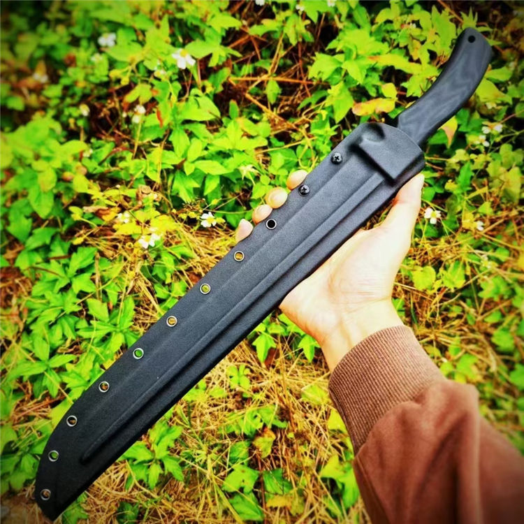 美国疯狗MAD DOG疯狗终极版直刀 总长:52.5CM 刃长:39CM 刃厚:5.8MM 刃宽:3.9CM 重量:550g 钢材:进口A8钢 热处理:专业真空热处理 硬度:60-61HRC 表面:缎面砂光 开刃方式:水冷多次开刃 柄材:黑色G10复合材质全包手柄 刀套:进口K鞘+活动夹子 包装:出口黄色简包装