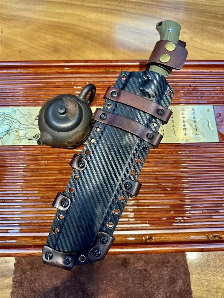 刀鞘:碳纤纹K鞘+意大利植鞣牛皮
