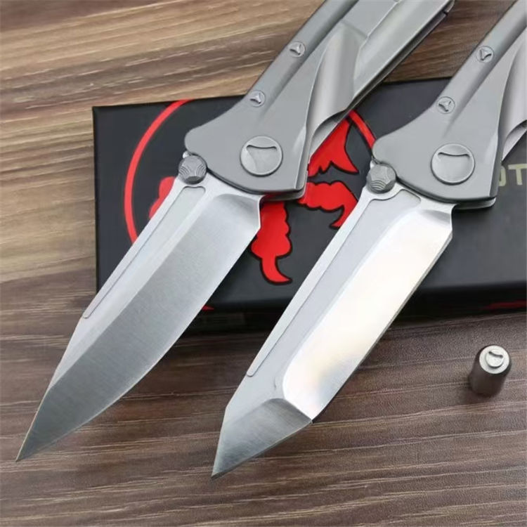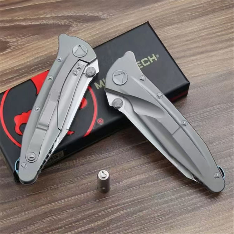 微技术三角洲钛合金折刀 全长:229mm 刃长:99mm 柄长:130mm 刃宽:28mm 刃厚:4.0mm 刃材:D2 刀重:160g 硬度:58-60HRC 表面:沙光拉丝 柄材:钛合金 系统:陶瓷轴承 其他:配彩盒