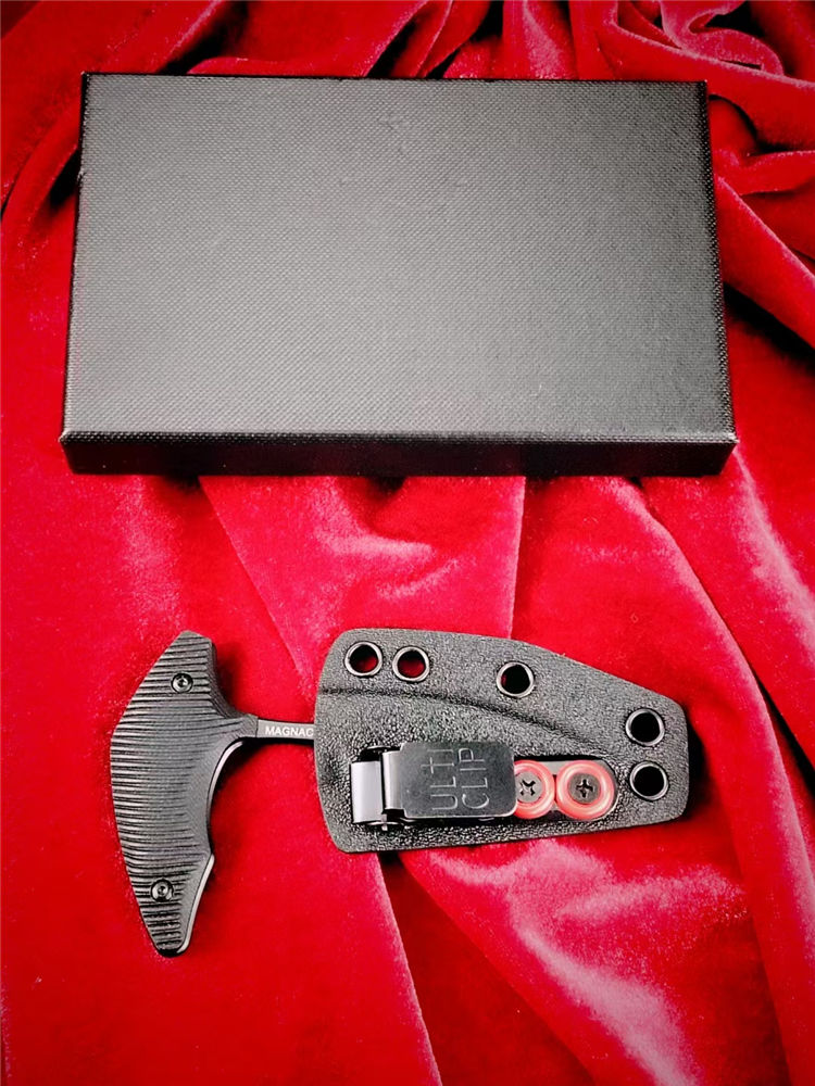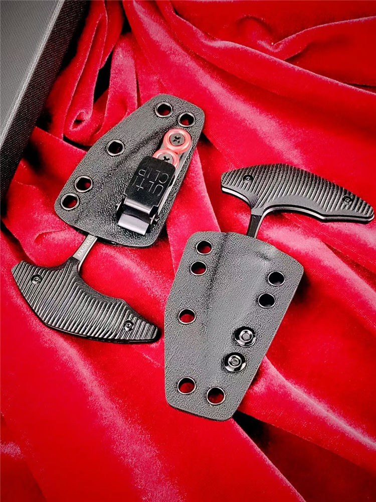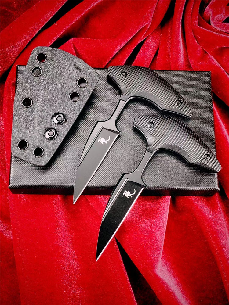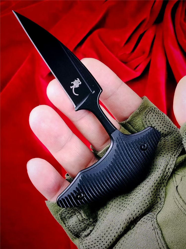 巴斯蒂内利手刺 总长:11.8cm 刃长:6.2cm 柄长:5.6cm 刃厚:2.8mm 刃宽:2cm 材质:D2 刀鞘:K鞘 重量:93g/150g(含包装) 包装:黑色礼盒