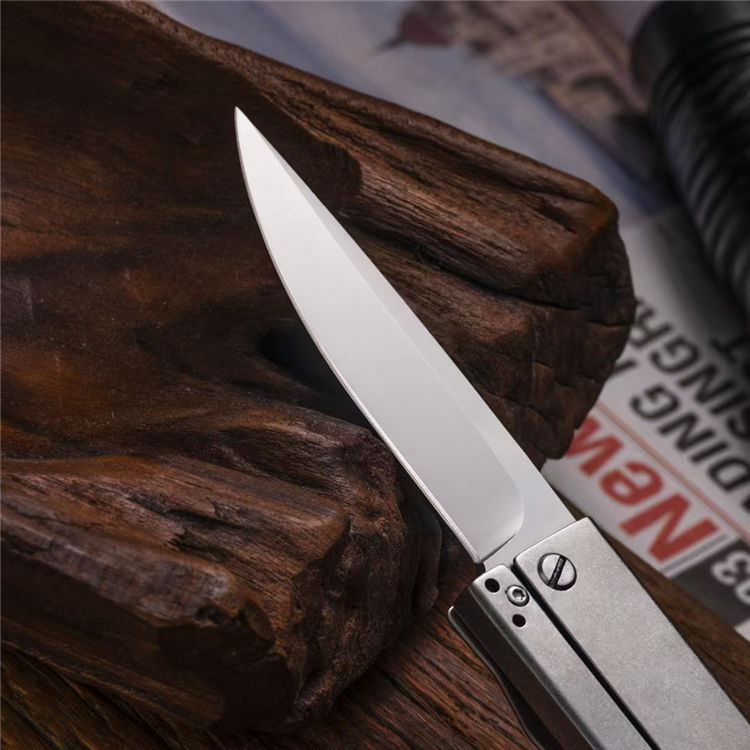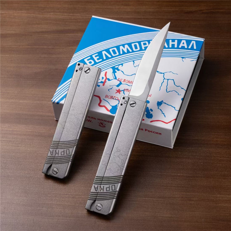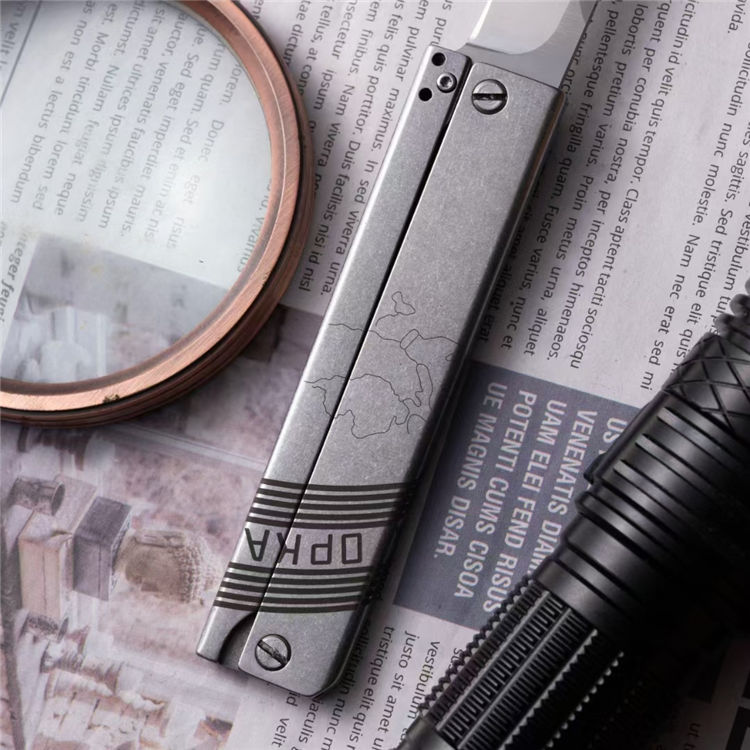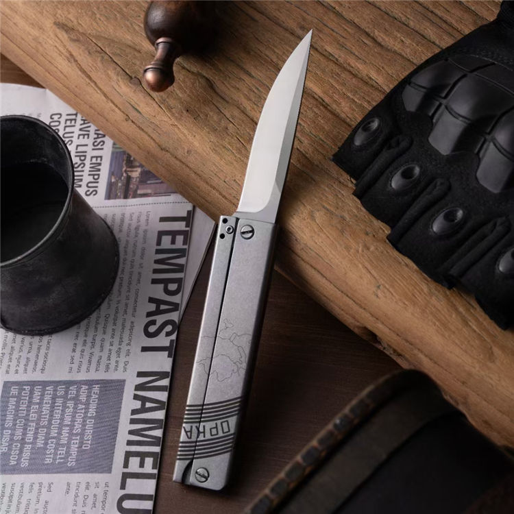 EDC爆破队战术折刀 全长:20cm 刃长:9cm 柄长:11cm 刃宽:2Ccm 刃厚:0.33cm 净量:100g 刃材:D2 硬度:60-62HRC(真空热处理) 表面:数控水磨钢本色 柄材:钢柄 备注:配皮带夹、刀片数控水磨 刀柄采用高精密CNC三维技术制作