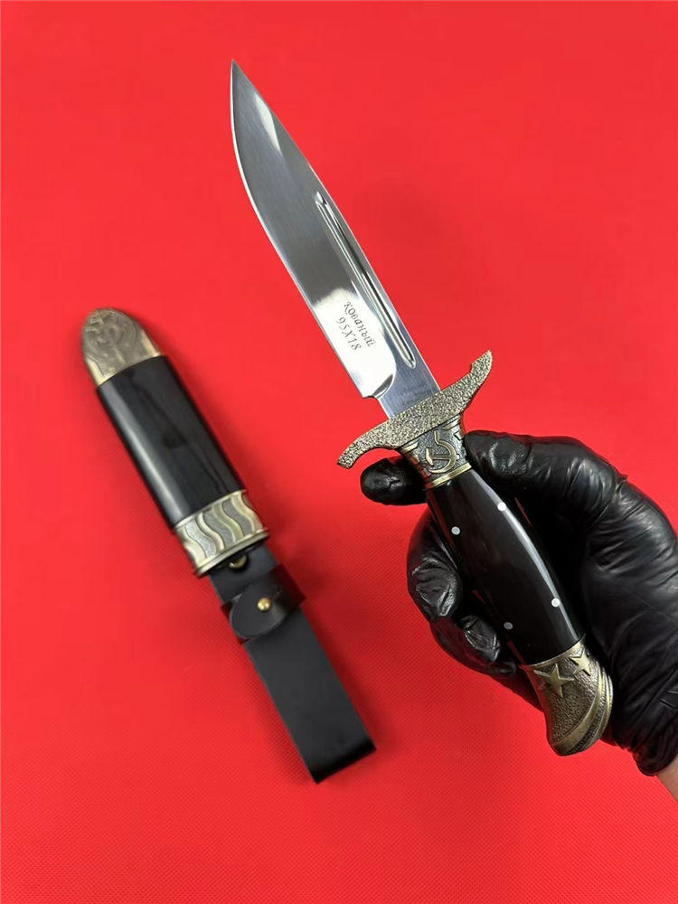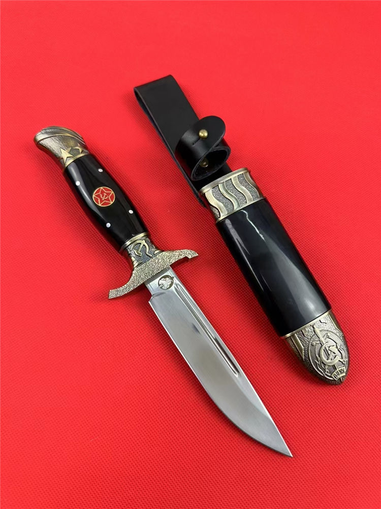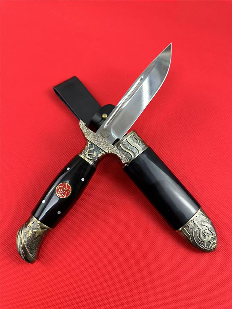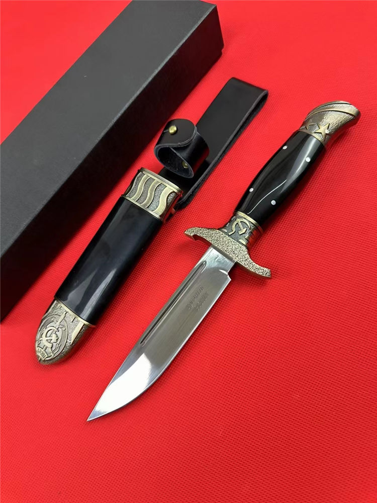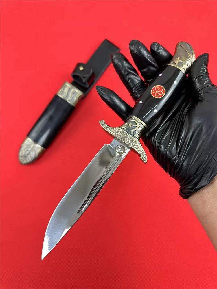 爱国者三代直刀 总长:25.5cm 刃长:13.1cm 刃宽:2.5cm 刃厚:2.4mm 刃材:7CR13Mov 柄材:锌合金+树脂 柄长:12cm 柄宽:3.2cm 柄厚:23.9mm 重量:243G 刀鞘:锌合金+树脂